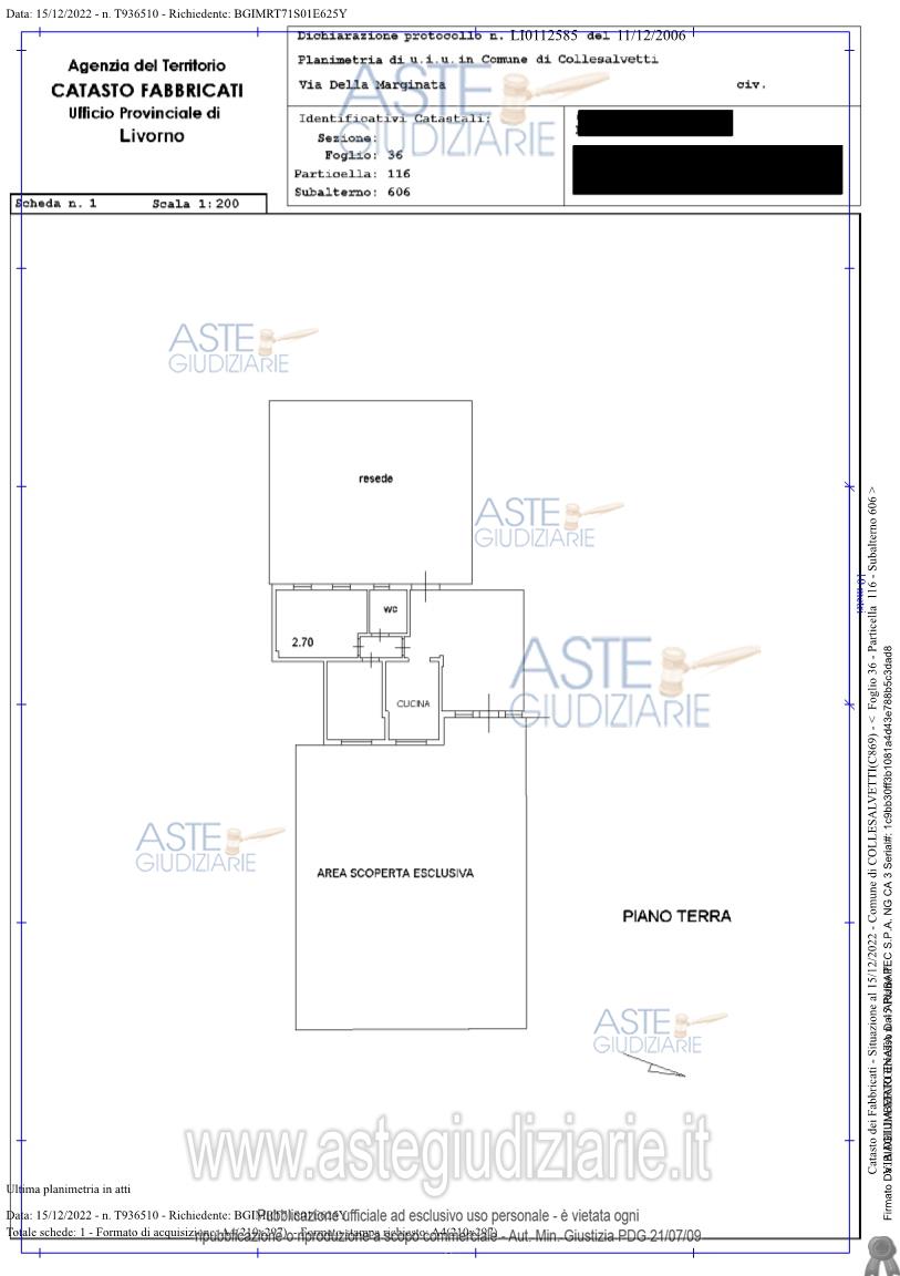 Vendita all'asta Senza incanto, con gara telematica asincrona - LOTTO UNICO: L'appartamento, ad uso abitativo, è posto al piano terra di edificio condominiale. L’unità fa parte di un edificio rurale ristrutturato nel 2005 e trasformato in condominio residenziale, costituito da 7 appartamenti, tutti con ingresso dipendente, con a comune gli impianti e la corte di accesso. La costruzione si trova in località Valtriano, in piena campagna: Vi si arriva da una strada secondaria sterrata, a sua volta collegata con la strada provinciale n. 12 (Via Di Marginata). Prezzo base € 115.500,00 (offerta minima € 86.625,00). Data inizio operazioni di vendita: 26/03/2026 ore 10:00. Giudice Dott. Elisa Pinna. Professionista delegato alla vendita Dott. Simone Morfini. Custode Giudiziario Dott. Simone Morfini - Email "smorfi@tin.it"; Tel. 0586884381. Rif. Tribunale di Livorno - Esecuzione immobiliare post legge 80 n. 172/2022