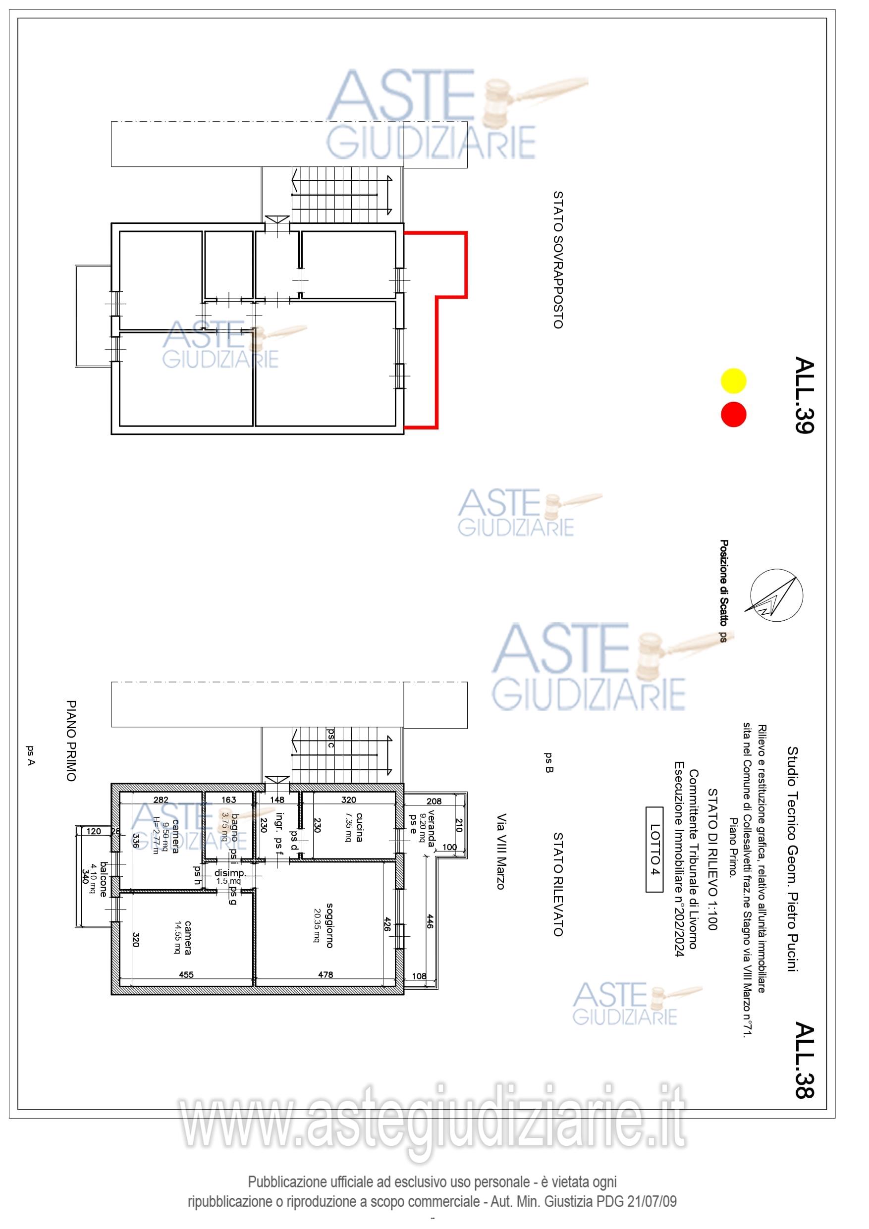 Vendita all'asta Senza incanto, con gara telematica asincrona - LOTTO 4: Abitazione in condominio, sita in Collesalvetti fraz. Stagno via VIII Marzo n°71, posto al piano primo, composto da ingresso, cucina e soggiorno comunicanti con balcone chiuso a veranda, oltre due camere con accesso al balcone, e bagno. Prezzo base € 94.500,00 (offerta minima € 70.875,00). Data inizio operazioni di vendita: 25/03/2026 ore 16:00. Professionista delegato alla vendita Avv. Massimo Cenerini. Custode Giudiziario Istituto Vendite Giudiziarie Di Pisa - Email "prenotazionilivorno@astagiudiziaria.com". Rif. Tribunale di Livorno - Espropriazione immobiliare (cartabia) n. 202/2024