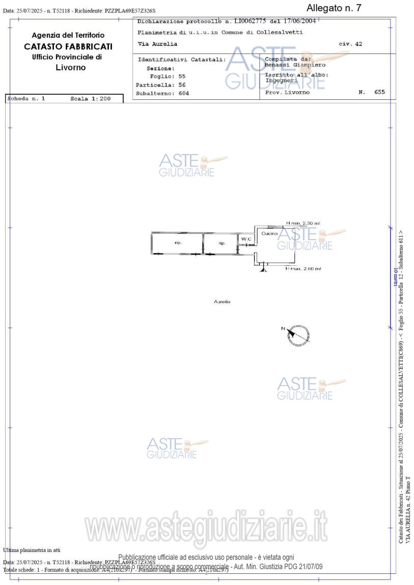 Vendita all'asta Senza incanto, con gara telematica asincrona - LOTTO UNICO: Piena proprietà di abitazione, situata al piano terra, è libero su due lati. La facciata esterna, l’unica visibile dalla corte, è intonacata e pitturata di colore giallo, gli infissi esterni sono in legno, privi di persiane. La copertura piana, con una leggera pendenza, ha orditura in legno ed è crollata nella parte centrale del fabbricato. Prezzo base € 22.500,00 (offerta minima € 16.875,00). Data inizio operazioni di vendita: 17/06/2026 ore 12:00. Giudice Dott. Elisa Pinna. Professionista delegato alla vendita Avv. Fabio Pattavina - Email "fabio.pattavina@ordineavvocatilivorno.it"; Tel. 0565883705. Custode Giudiziario Istituto Vendite Giudiziarie Di Pisa - Email "prenotazionilivorno@astagiudiziaria.com". Rif. Tribunale di Livorno - Espropriazione immobiliare (cartabia) n. 85/2025