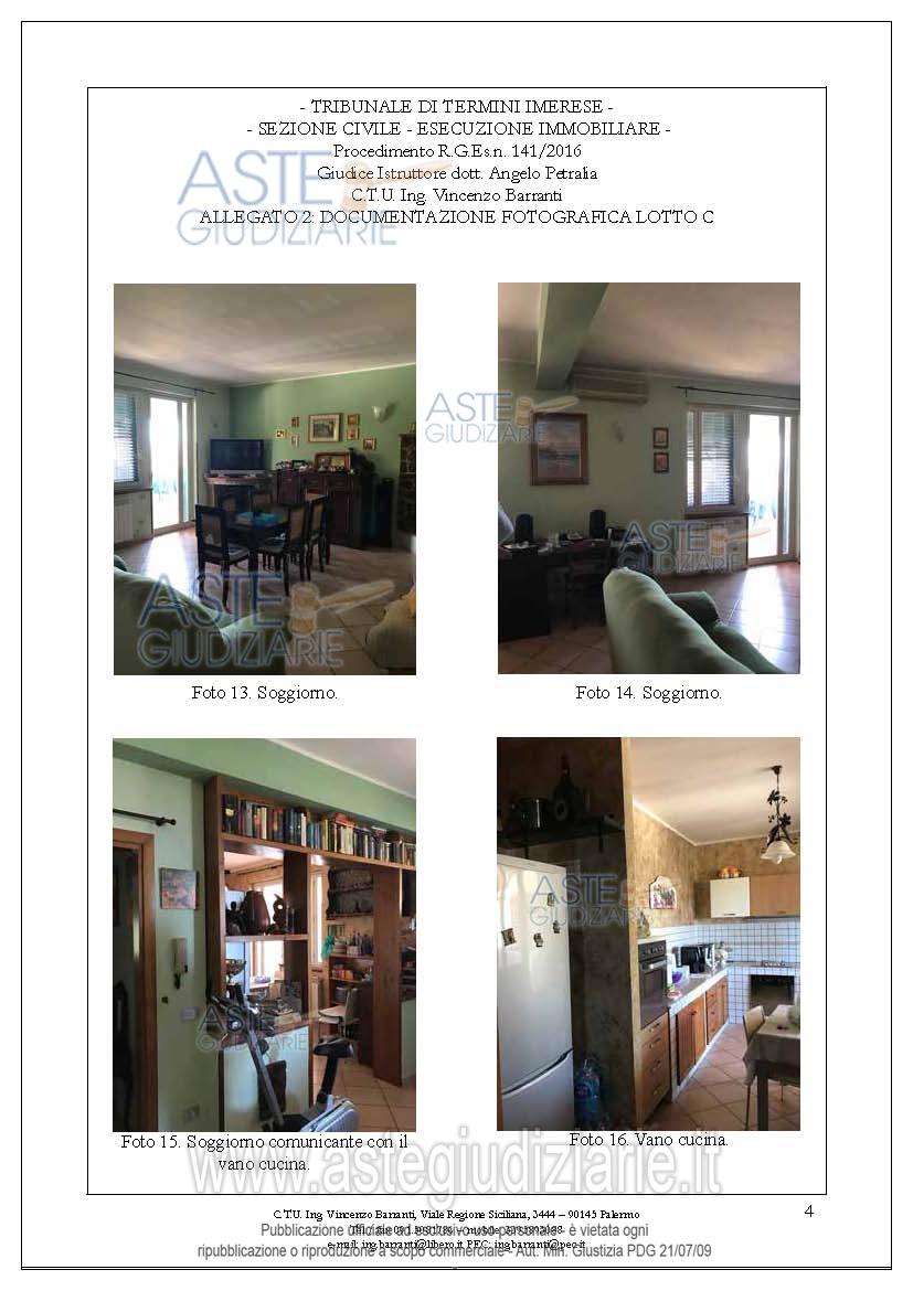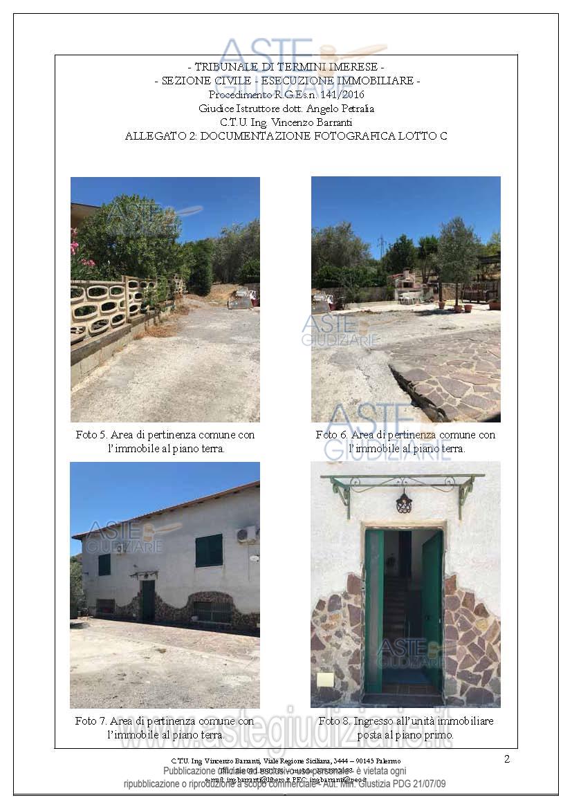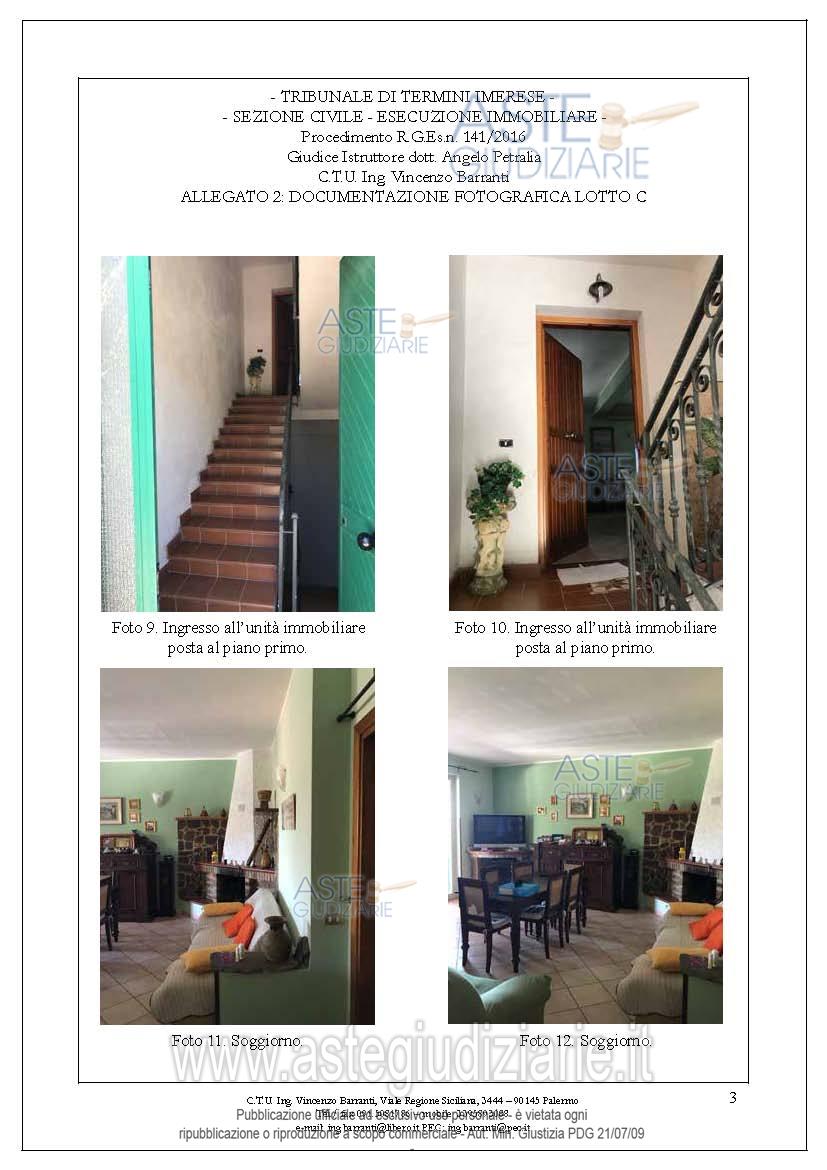 Vendita all'asta Senza incanto, con gara telematica sincrona - LOTTO 3: Piena proprietà dell'appartamento ubicato in territorio di Collesano, c/da Basalaci,snc, piano 1°. Catasto Collesano fg. 13, part. 616, sub. 2. Cat. A/2, Classe 3, Vani 6,5, mq 203,45. Con area di pertinenza comune con l'officina al piano terra, L'unità immobiliare risulta cosi composta: un vano soggiorno comunicante con il vano cucina; due servizi igienici; due camere da letto con finestra prospiciente sul prospetto retrostante; due disimpegni; una cameretta. L'immobile risulta occupato dall’esecutato. Prezzo base € 63.532,00 (offerta minima € 47.671,00). Data vendita 15/12/2025 ore 11:00. Professionista delegato alla vendita Avv. Vincenzo Vitale - Email "studiovallone.v@libero.it"; Cell. 330691265. Rif. Tribunale di Termini Imerese - Contenzioso civile n. 1732/2018
