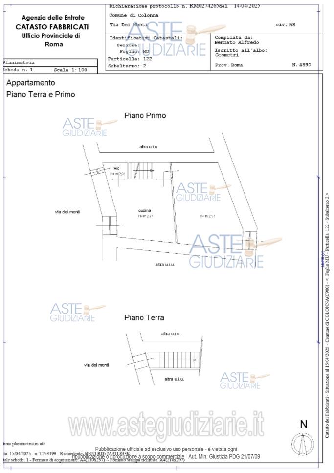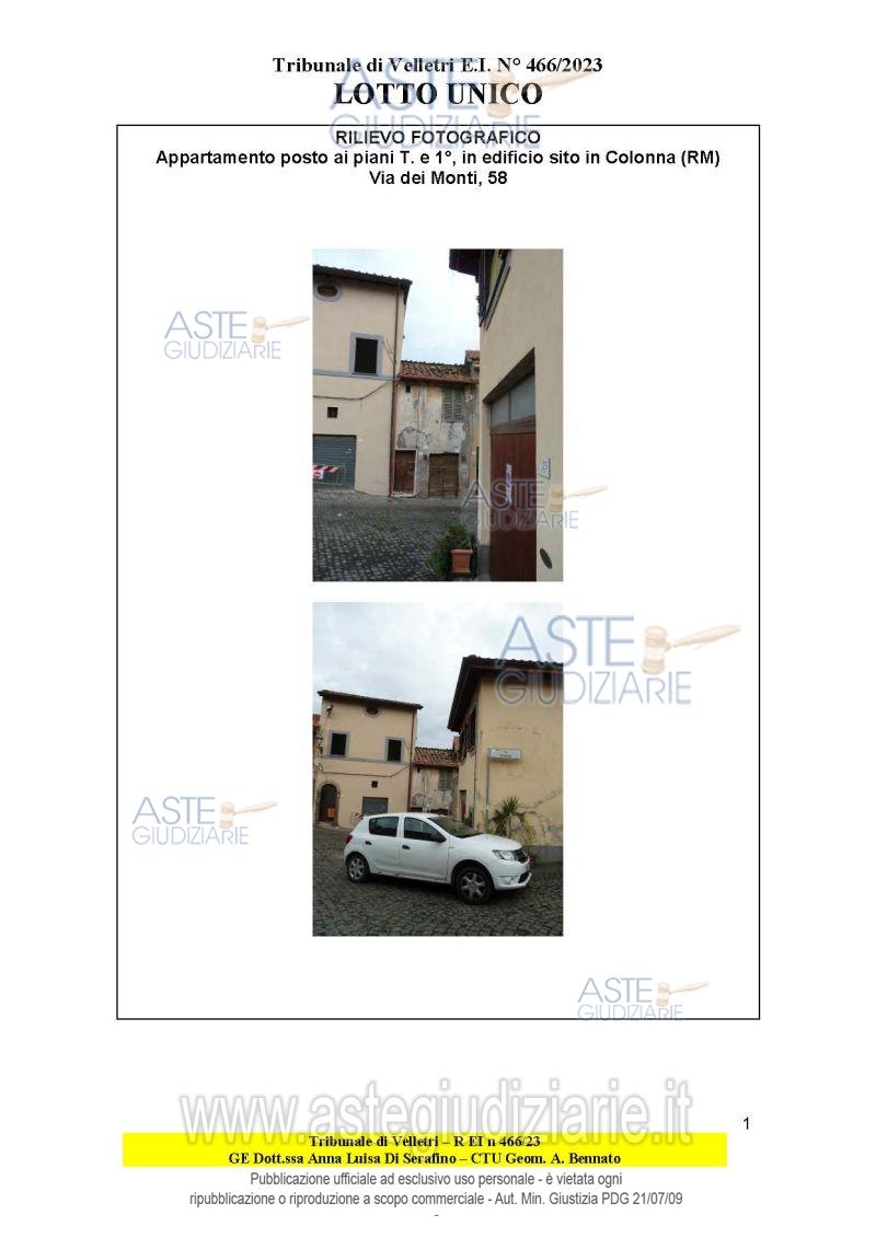 Vendita all'asta Senza incanto, con gara telematica asincrona - LOTTO UNICO: Piena proprietà di appartamento sito nel centro storico del Comune di Colonna (RM) costituito al piano terra da un minuto ingresso con scala interna esclusiva di accesso al piano primo, di 2,5 vani catastali. Prezzo base € 10.100,00 (offerta minima € 7.575,00). Data inizio operazioni di vendita: 23/04/2026 ore 15:00. Giudice Dott. Dott.Ssa Anna Luisa Di Serafino. Professionista delegato alla vendita Avv. Avv. Paolo Pistoia - Email "paolo.pistoia@alice.it". Custode Giudiziario Avv. Avv. Paolo Pistoia - Email "paolo.pistoia@alice.it". Rif. Tribunale di Velletri - Espropriazione immobiliare (cartabia) n. 466/2023