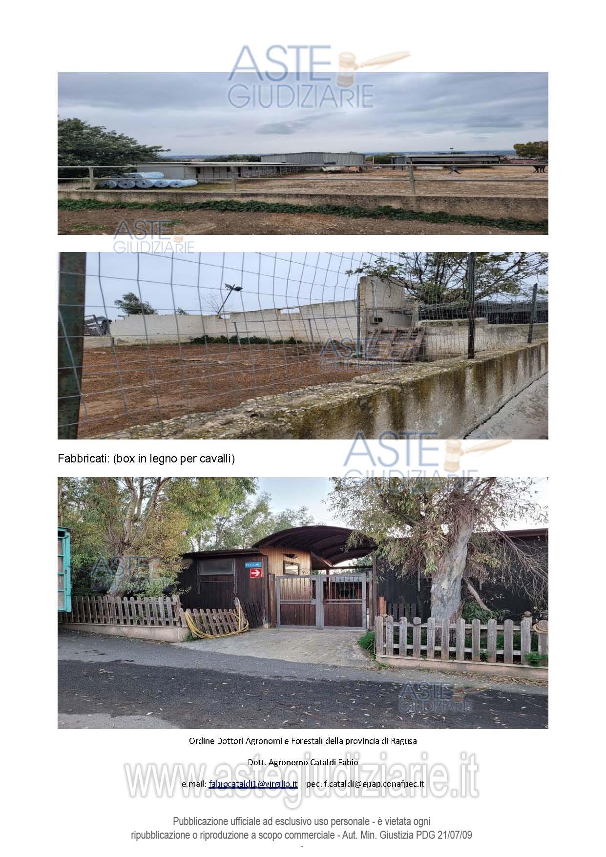 Vendita all'asta Senza incanto, con gara telematica sincrona mista - LOTTO 4: Piena proprietà per l’intero degli immobili, comprensivi di terreni, strutture per la stabulazione dei cavalli e altri manufatti. SI ricomprende anche un immobile ad uso abitativo. Prezzo base € 125.836,31 (offerta minima € 94.377,23). Data vendita 10/03/2026 ore 09:30. Giudice Carlo Di Cataldo. Professionista delegato alla vendita Avv. Ignazia Arezzo - Email "ignaziaarezzo@gmail.com". Custode Giudiziario Avv. Ignazia Arezzo - Email "ignaziaarezzo@gmail.com"; Tel. 0932247478. Rif. Tribunale di Ragusa - Esecuzione immobiliare post legge 80 n. 124/2022
