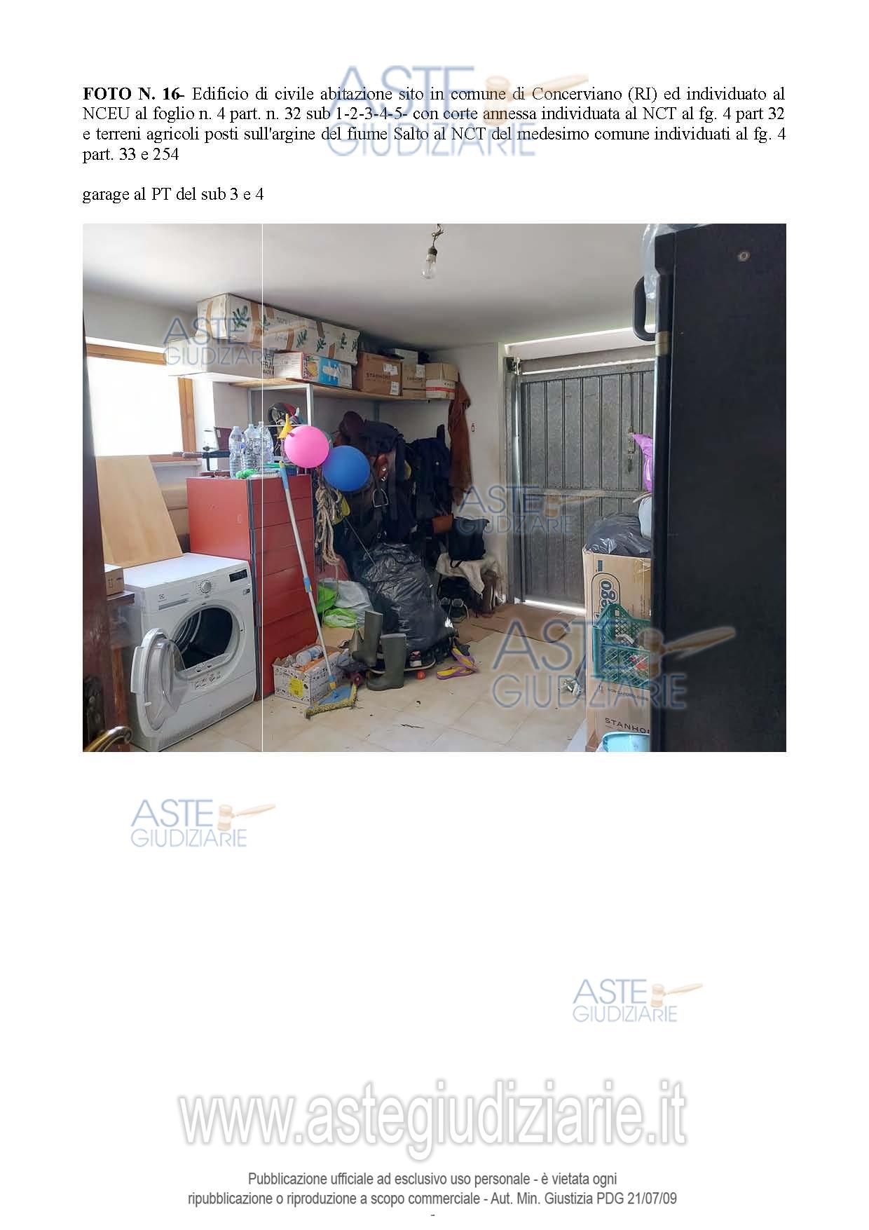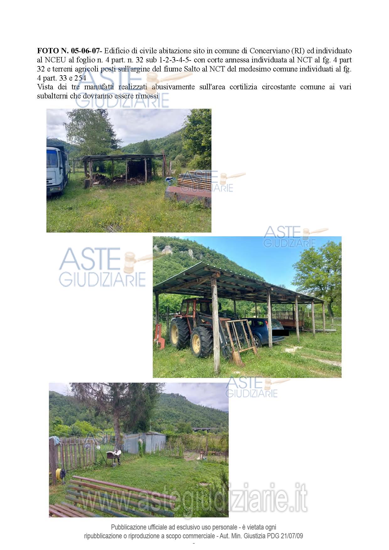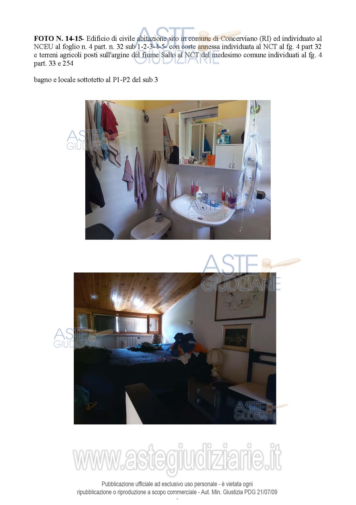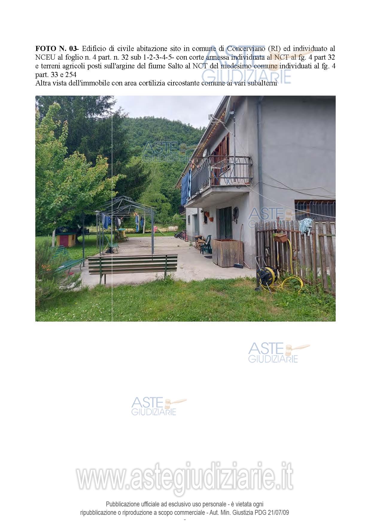 Vendita all'asta Senza incanto, con gara telematica asincrona - LOTTO 2: Piena proprietà per la quota di 100/100 di appartamento in bifamiliare distribuito tra PT-1-2, altro locale di PT destinato a magazzino e locale caldaia; due camere, cameretta e bagno al p1 con ingresso, terrazzo e disimpegno, locale al piano sottotetto; con diritti pari ad 1/2 sul terreno circostante l'immobile sulla strada di accesso all'edificio comune ad altri subalterni. Piena proprietà pari all'intero di appezzamento di terreno agricolo, incolto produttivo, classe U, posto sull'argine del fiume salto. Prezzo base € 54.736,71 (offerta minima € 41.052,54). Data inizio operazioni di vendita: 13/04/2026 ore 11:40. Giudice Dott. Roberto Colonnello. Professionista delegato alla vendita Avv. Alessia Croce - Email "avvocatoalessiacroce@gmail.com"; Cell. 3490556370. Custode Giudiziario Avv. Alessia Croce - Email "avvocatoalessiacroce@gmail.com"; Cell. 3490556370. Rif. Tribunale di Rieti - Espropriazione immobiliare (cartabia) n. 142/2023
