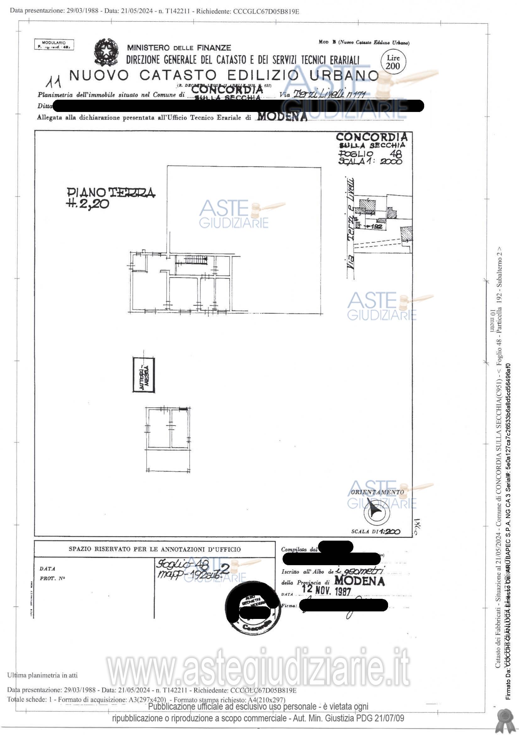 Vendita all'asta Senza incanto, con gara telematica asincrona - LOTTO UNICO: Piena ed intera proprietà di fabbricato civile “terra – cielo” con area di pertinenza in Concordia sulla Secchia (MO) via Terzi e Livelli , 171, costituita da:abitazione unifamiliare così composta: P.T. ingresso, cucina, sala da pranzo, soggiorno, ripostiglio, corridoio/vano scale (sup. commerciale 87,70 mq), centrale termica, cantina/deposito ; 1° p.: disimpegno, 3 stanze da letto, ripostiglio, bagno; p. 3 vani sottotetto/soffitta; box posto auto in lamiera; area cortiliva di pertinenza. Prezzo base € 71.250,00 (offerta minima € 53.437,50). Data inizio operazioni di vendita: 10/02/2026 ore 10:30. Professionista delegato alla vendita Avv. Margherita Garuti - Email "margherita@studiolegalegaruti.it"; Tel. 0598341404. Custode Giudiziario Alex Manelli - Email "visiteimmobili@ivgmodena.it"; Tel. 059847301. Rif. Tribunale di Modena - Espropriazione immobiliare (cartabia) n. 235/2023