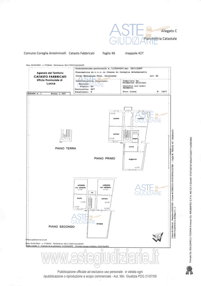 Vendita all'asta Senza incanto, con gara telematica sincrona mista - LOTTO UNICO: Unità immobiliare ad uso civile abitazione facente parte di un fabbricato elevato su tre piani fuori terra oltre il seminterrato in Coreglia Antelminelli (LU), frazione Calavorno, Corso Nazionale n.62. Prezzo base € 86.882,40 (offerta minima € 65.161,80). Data vendita 05/05/2026 ore 10:00. Professionista delegato alla vendita Avv. Filippo Alessandro Ricci - Email "mail@studiocattani.com"; Tel. 0583418068. Custode Giudiziario Ivg Lucca Sofir Srl - Email "custodieivg@gmail.com"; Tel. 0583418555. Rif. Tribunale di Lucca - Espropriazione immobiliare (cartabia) n. 120/2024