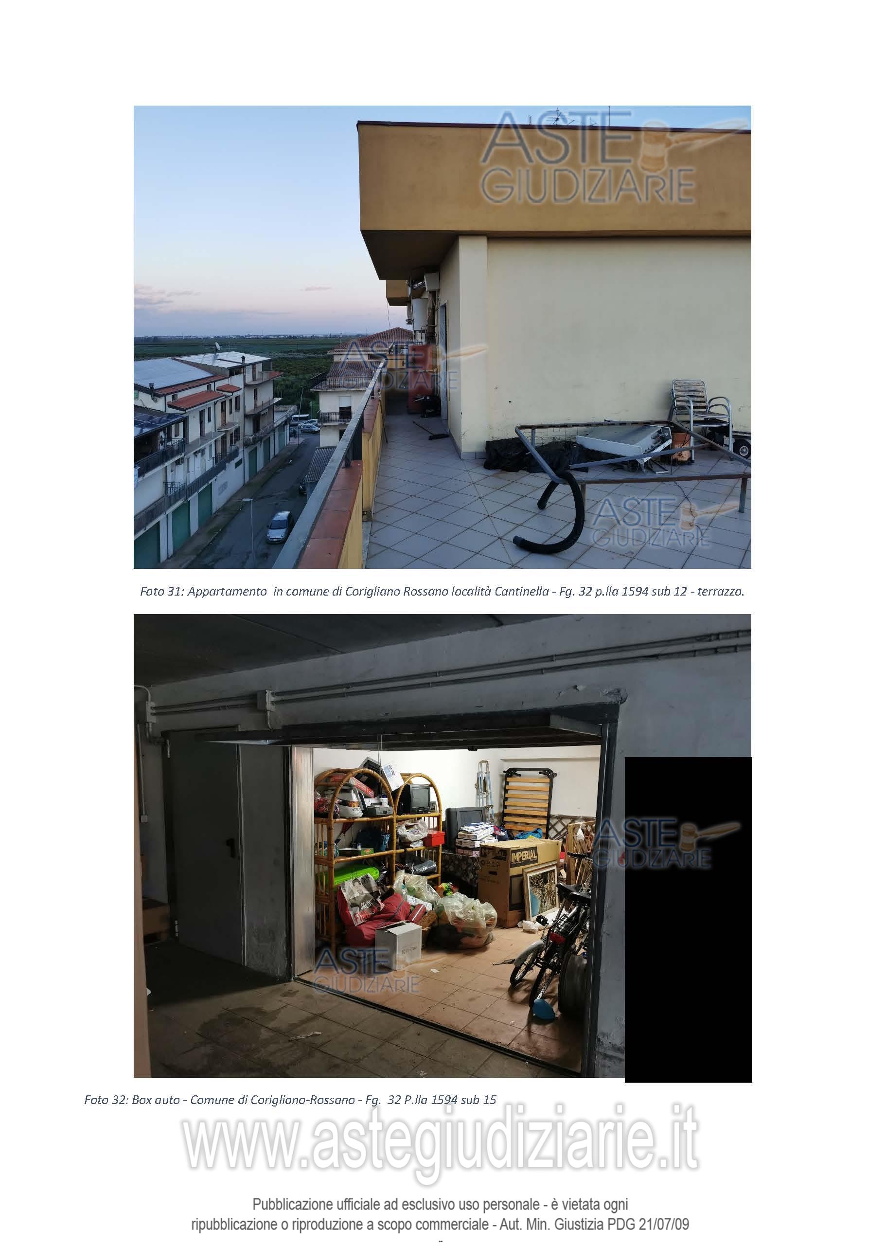Vendita all'asta Senza incanto, con gara telematica sincrona - LOTTO 1: Proprietà per l’intero di un appartamento sito in località Cantinella – via Nazionale s.n.c identificato al catasto fabbricati – sezione di Corigliano al Fg. 32 P.lla 1594 sub. 12 – Zona Cens. 2 - cat. A/2 classe 1 - cons. 7 vani – superficie catastale totale 167 mq – Totale escluse aree scoperte 144 mq – Rendita 488,05; Il tutto meglio descritto nella predetta perizia di stima del 07.04.2021 a firma del tecnico. Prezzo base € 108.712,59 (offerta minima € 81.534,44). Data vendita 18/03/2026 ore 15:00. Giudice Giuliana Gaudiano. Professionista delegato alla vendita Dott. Pierdamiano Dima - Email "info@studiodima.eu". Curatore Dott. Pierdamiano Dima - Email "info@studiodima.eu"; Tel. 0962818862. Rif. Tribunale di Castrovillari - Fallimentare (nuovo rito) n. 17/2017
