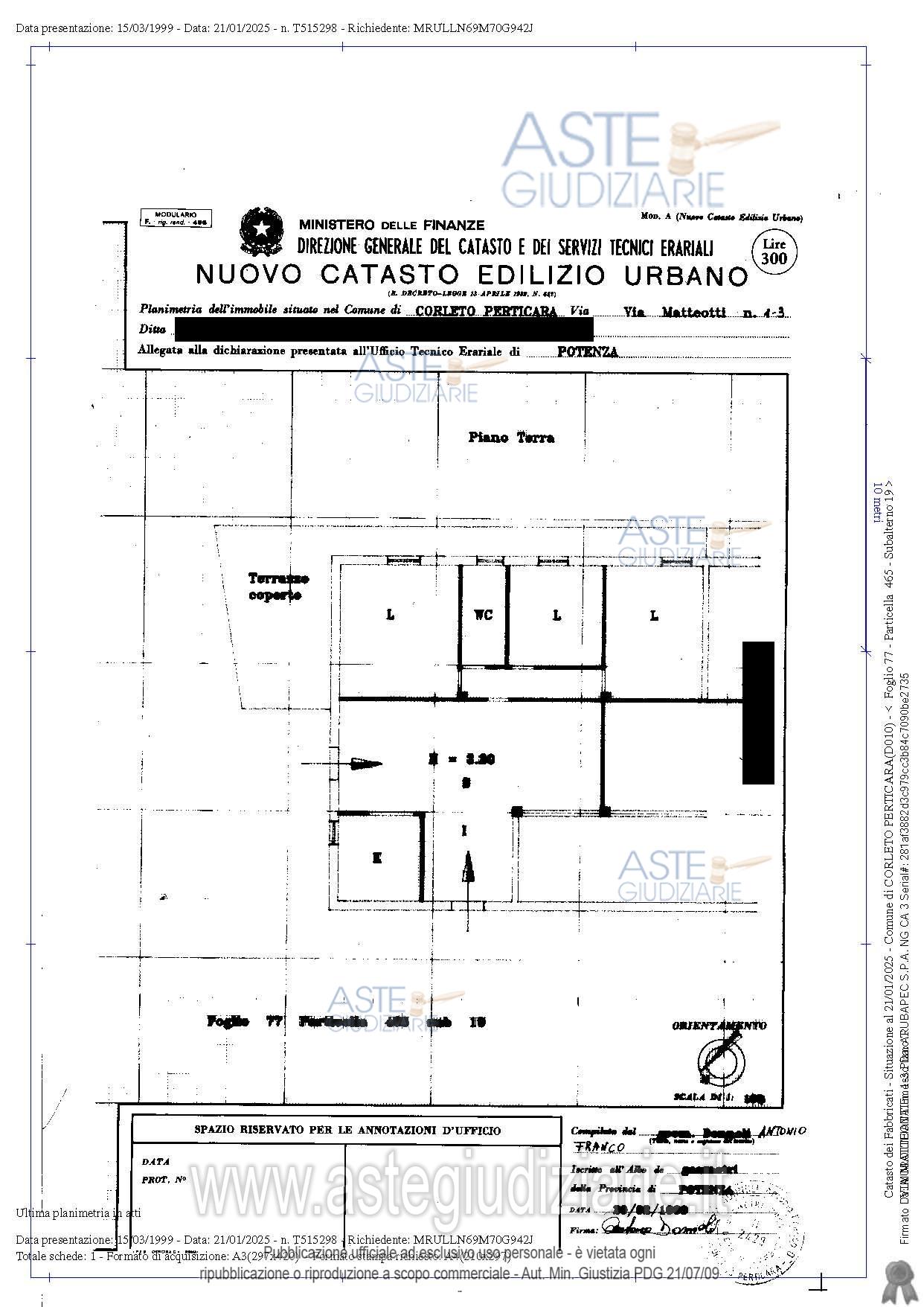 Custode Giudiziario Avv. Monica Dea De Luca - Email "avv.monicadeadeluca@gmail.com"; Tel. 0971/287426; Cell. 338/5971550.