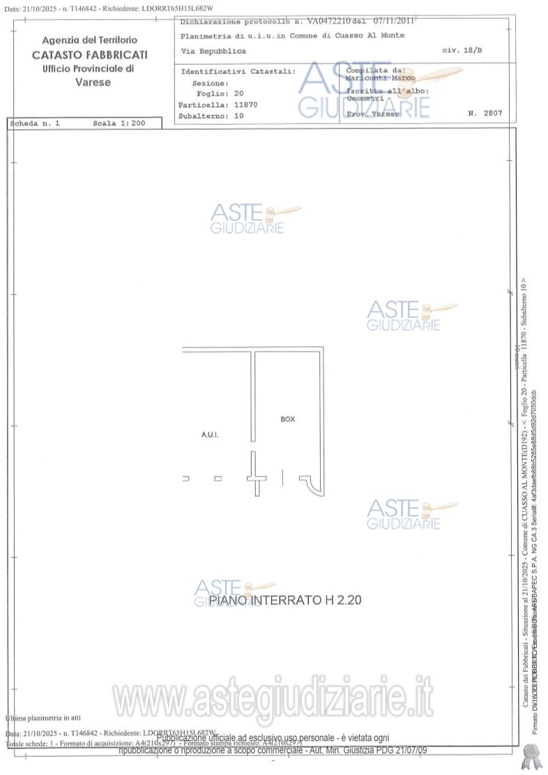 Vendita all'asta Senza incanto, con gara telematica sincrona mista - LOTTO 1: - piena proprietà di abitazione di tipo economico sita in via Repubblica n.18/b a Cuasso al Monte (VA), composta da locale cantina al piano interrato, locale soggiorno, cucina, disimpegno, bagno e . Prezzo base € 226.000,00 (offerta minima € 169.500,00). Data vendita 24/06/2026 ore 14:30. Giudice Jessica Pintauro. Professionista delegato alla vendita Avv. Fabrizio Bini - Email "studiobinidipietro@libero.it". Custode Giudiziario Givg Srl - Email "immobiliari.va@givg.it"; Tel. 0332335510. Rif. Tribunale di Varese - Espropriazione immobiliare (cartabia) n. 176/2025