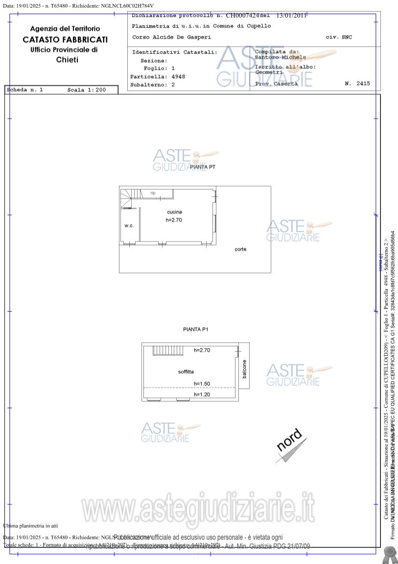 Vendita all'asta Senza incanto, con gara telematica asincrona - LOTTO UNICO: Piena proprietà per la quota di 1000/1000 dell'unità immobiliare facente parte di complesso edilizio di villetta a schiera sito in Cupello (CH) alla via Alcide De Gasperi n. 6, costituita da: unità immobiliare ai piani terra, per civile abitazione della superficie lorda di circa mq. 60,00, e primo, sottotetto per uso soffitta della superficie lorda circa mq. 60,00 e balcone di circa mq. 4,80, con annessa corte esclusiva di pertinenza al piano terra della superficie lorda di circa mq. 80. Prezzo base € 92.464,00 (offerta minima € 69.348,00). Data inizio operazioni di vendita: 25/02/2026 ore 11:00. Professionista delegato alla vendita Dott. Fernando Gabriele Pignatelli. Custode Giudiziario Ivg Abruzzo - Email "ivgpescara1@gmail.com"; Cell. 3666892779; Tel. 3408931637. Rif. Tribunale di Vasto - Espropriazione immobiliare (cartabia) n. 66/2024