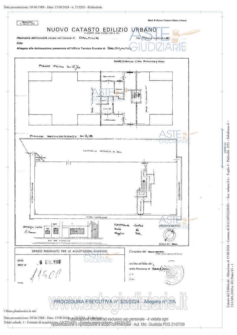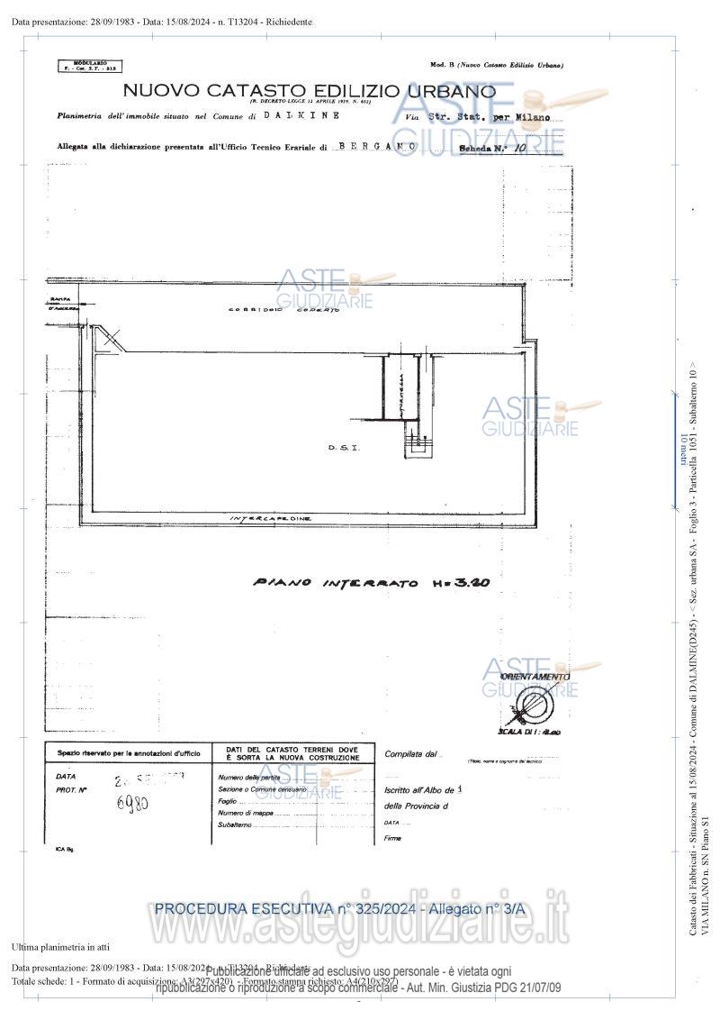 Vendita all'asta Senza incanto, con gara telematica asincrona - LOTTO UNICO: Appartamento posto al piano primo con annessi cantina e box al piano interrato. Come da perizia, si precisa che l'abitazione è sita in Dalmine (BG), Via Provinciale n. 28 (già Via Provinciale per Milano) mentre il box è sito in Dalmine (BG), Via Carnovali sn (già Via Milano sn). Prezzo base € 82.000,00 (offerta minima € 61.500,00). Data inizio operazioni di vendita: 05/11/2025 ore 14:30. Giudice Dott. Luca Fuzio. Professionista delegato alla vendita Dott. Stefano Zucchelli - Tel. 035720890. Custode Giudiziario Avv. Angelo Austoni - Email "angelo.austoni@gmail.com"; Tel. 035219497. Rif. Tribunale di Bergamo - Espropriazione immobiliare (cartabia) n. 325/2024