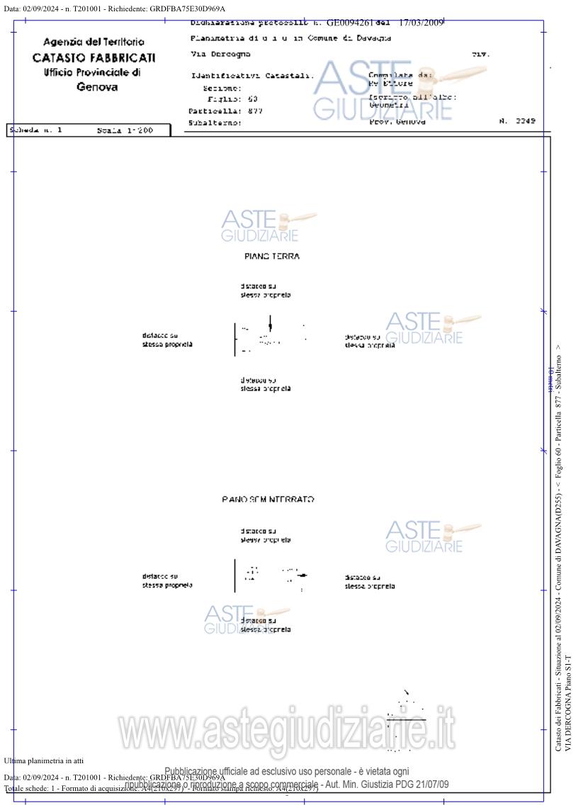 Vendita all'asta Senza incanto, con gara telematica sincrona mista - LOTTO UNICO: Fabbricato indipendente con annesso giardino, oltre a terreno pertinenziale con magazzino ed ulteriore appezzamento di terreno collocato a distanza rispetto al fabbricato, documentalmente asservito a posto auto all’abitazione ma di fatto inutilizzabile ed avente qualità bosco, il tutto raggiungibile solo pedonalmente. Annesso è il terreno circostante oltre l’appezzamento su cui insiste il magazzino che si sviluppa su due piani. Distante circa un chilometro dalla casa, è ubicato altro appezzamento boschivo. Prezzo base € 18.221,93 (offerta minima € 13.666,45). Data vendita 01/04/2026 ore 14:30. Professionista delegato alla vendita Avv. Bellieni Giuseppe - Email "gbellieni@libero.it"; Tel. 010581598. Custode Giudiziario Sovemo Srl - Email "visitegenova@sovemo.com". Rif. Tribunale di Genova - Espropriazione immobiliare (cartabia) n. 179/2024