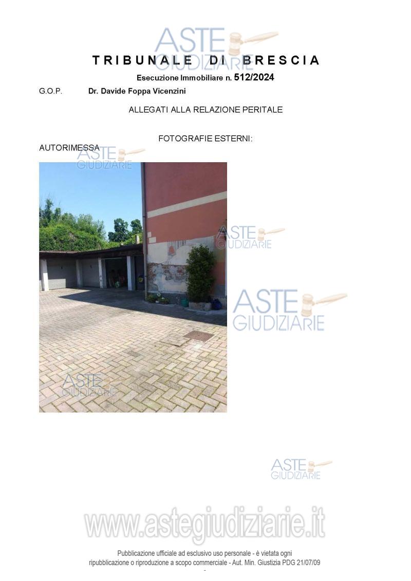Vendita all'asta Senza incanto, con gara telematica asincrona - LOTTO UNICO: Piena proprietà di appartamento monolocale ed autorimessa. Prezzo base € 27.420,00 (offerta minima € 20.565,00). Data inizio operazioni di vendita: 29/01/2026 ore 11:00. Professionista delegato alla vendita Not. Nicola Ariasi - Email "nariasi@notariato.it"; Tel. 030222849. Custode Giudiziario Not. Nicola Ariasi - Email "visiteimmobili@anpebrescia.it". Rif. Tribunale di Brescia - Espropriazione immobiliare (cartabia) n. 512/2024