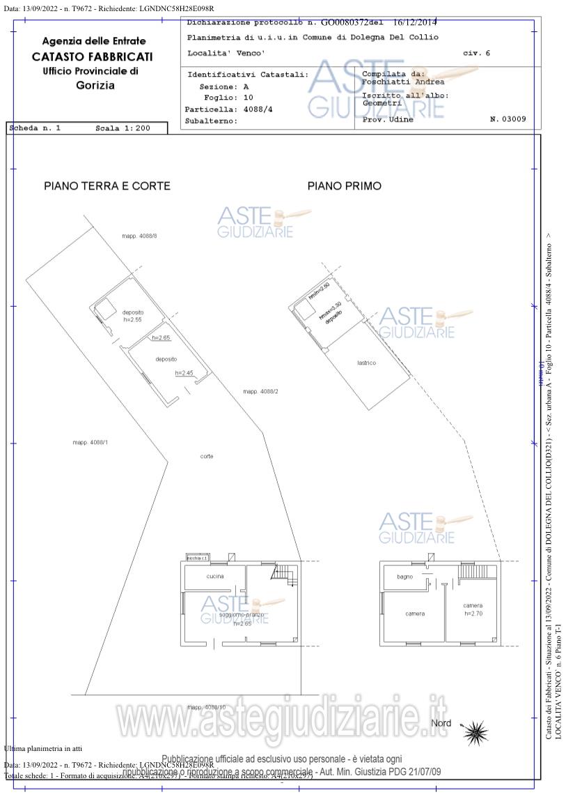 Vendita all'asta Senza incanto, con gara telematica sincrona mista - LOTTO UNICO: Villa singola e deposito pertinenza del fabbricato principale. Prezzo base € 49.350,00 (offerta minima € 37.012,50). Data vendita 09/12/2025 ore 10:30. Giudice Dott. Martina Ponzin. Professionista delegato alla vendita Avv. Marco Mizzon - Email "studio@nead.pro"; Tel. 0481538020. Custode Giudiziario Avv. Marco Mizzon - Email "studio@nead.pro"; Tel. 0481538020. Rif. Tribunale di Gorizia - Esecuzione immobiliare post legge 80 n. 36/2021