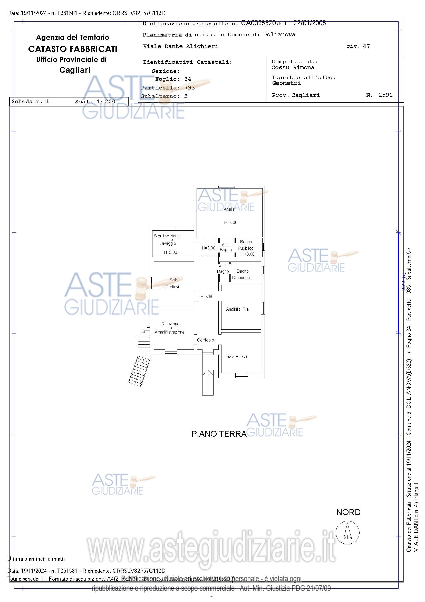 Vendita all'asta Senza incanto, con gara telematica asincrona - LOTTO UNICO: Quota pari all’intero del diritto di proprietà del fabbricato indipendente a destinazione mista su 2 livelli senza collegamento tra loro: PT (Via Dante 49) laboratorio analisi, con: ingresso, corridoio, sala d’attesa, sala prelievi, antibagno e bagno dipendenti, antibagno e bagno pubblico, 2 vani analisi, vano sterilizzazione e lavaggio, sala ricezione e amministrazione; P1 (Via Dante 47) destinato ad abitazione con: soggiorno pranzo angolo cottura, disimpegno, bagno, 2 camere, 2 balconi, loggiati, soppalco. Prezzo base € 161.440,00 (offerta minima € 121.080,00). Data inizio operazioni di vendita: 24/02/2026 ore 11:00. Giudice Francesco De Giorgi. Professionista delegato alla vendita Not. Stefano Casti - Email "ufficiouniconotai@pec.it"; Tel. 07060222574. Custode Giudiziario Ivg Cagliari - Email "ivg.visiteimmobili@tiscali.it"; Tel. 0702299036. Rif. Tribunale di Cagliari - Espropriazione immobiliare (cartabia) n. 163/2023