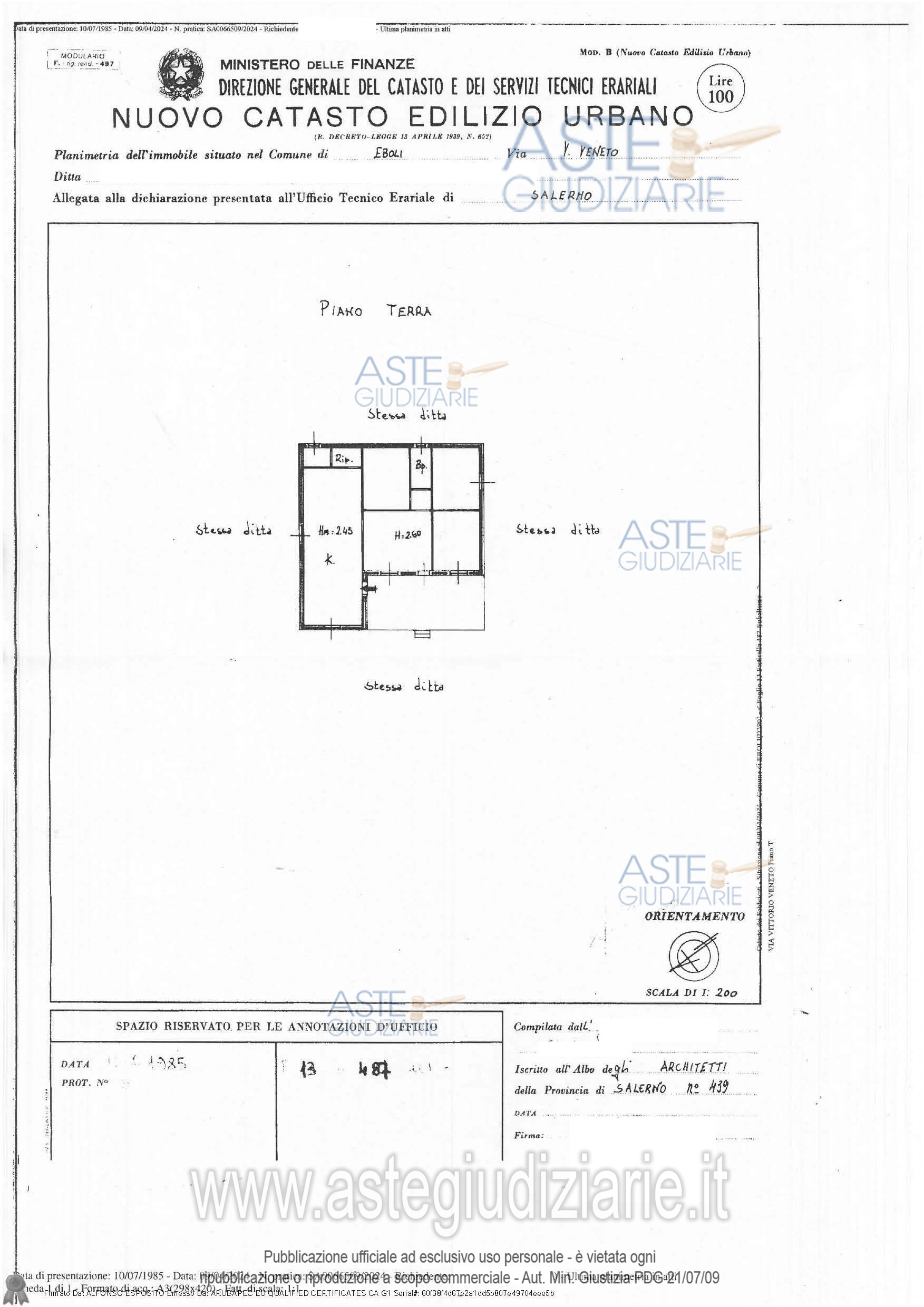 Vendita all'asta Senza incanto, con gara telematica asincrona - LOTTO UNICO: Piena e perfetta proprietà dell’appartamento ad uso civile abitazione, posto in unico piano furi terra, ubicato in Località “Pezza Paciana”, con accesso dalla via Vittorio Veneto snc, insistente su un’area della superficie di metri quadri 1497 circa, composto di: una cucina-soggiorno, uno studio, una stanza pluriuso, due stanze da letto ed un bagno, oltre ad un porticato, orientato verso Via Vittorio Veneto, direttamente comunicante con i vani principali e gli accessori dell’abitazione. Prezzo base € 148.744,80 (offerta minima € 111.558,60). Data inizio operazioni di vendita: 04/11/2025 ore 10:00. Giudice Dott. Enza Faracchio. Curatore Avv. Annarita Marrazzo. Rif. Tribunale di Salerno - Liquidazione giudiziale(cci) n. 13/2024