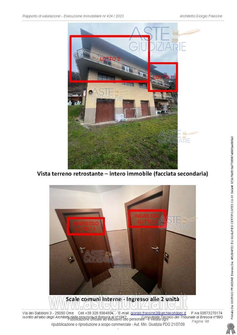 Vendita all'asta Senza incanto, con gara telematica asincrona - LOTTO 2: Piena proprietà di appartamento posto al piano primo e sottotetto,. Prezzo base € 279.000,00 (offerta minima € 209.250,00). Data inizio operazioni di vendita: 20/05/2026 ore 10:00. Professionista delegato alla vendita Not. Gianni Tufano - Email "gtufano@notariato.it"; Tel. 030222849. Custode Giudiziario Not. Gianni Tufano - Email "visiteimmobili@anpebrescia.it". Rif. Tribunale di Brescia - Espropriazione immobiliare (cartabia) n. 362/2024