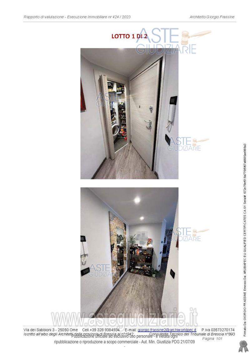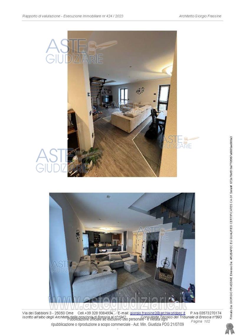 Vendita all'asta Senza incanto, con gara telematica asincrona - LOTTO 1: Piena proprietà di appartamento posto al piano primo con mansarda. Prezzo base € 195.000,00 (offerta minima € 146.250,00). Data inizio operazioni di vendita: 20/05/2026 ore 10:00. Professionista delegato alla vendita Not. Gianni Tufano - Email "gtufano@notariato.it"; Tel. 030222849. Custode Giudiziario Not. Gianni Tufano - Email "visiteimmobili@anpebrescia.it". Rif. Tribunale di Brescia - Espropriazione immobiliare (cartabia) n. 362/2024