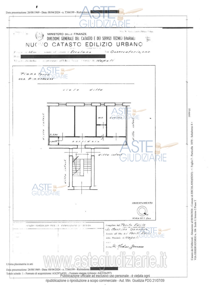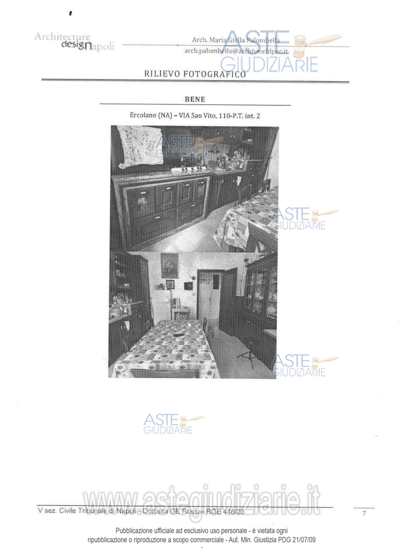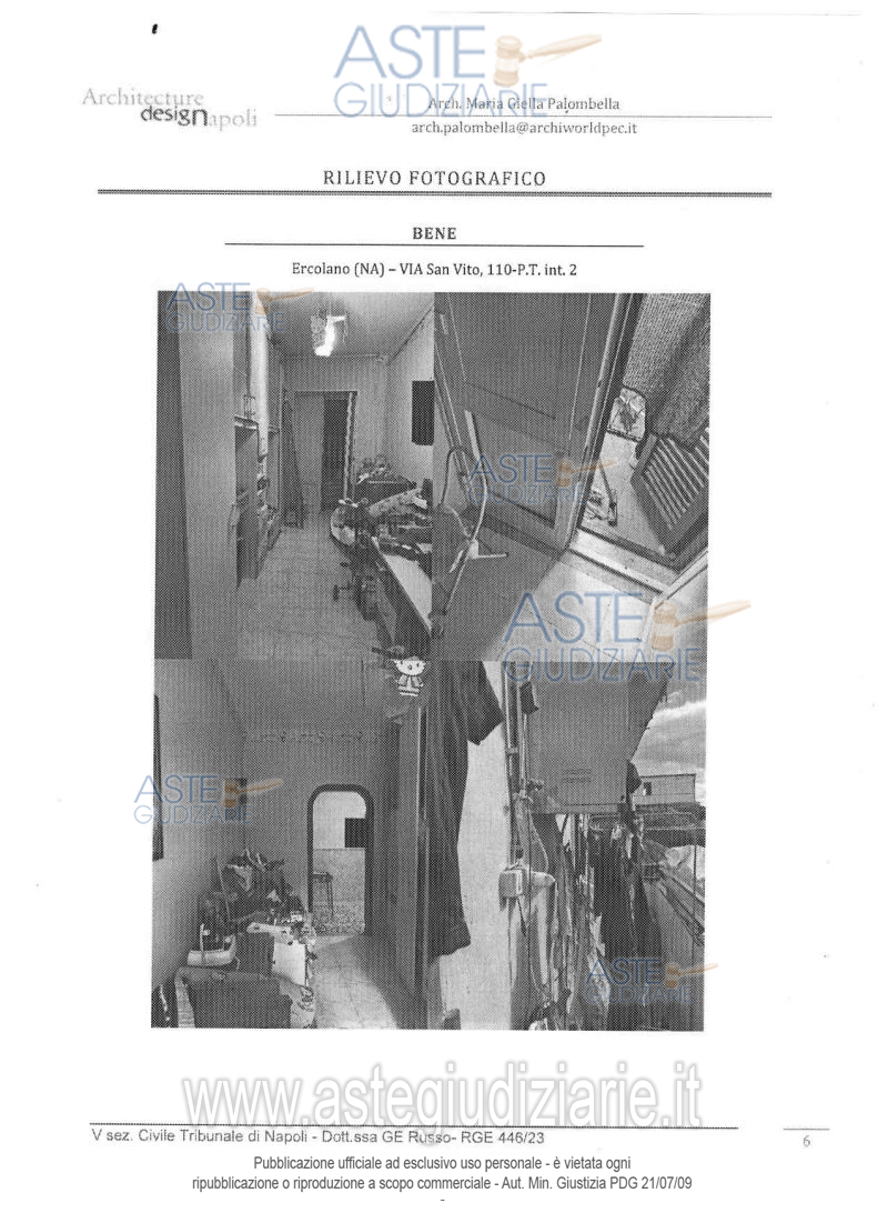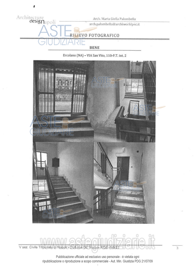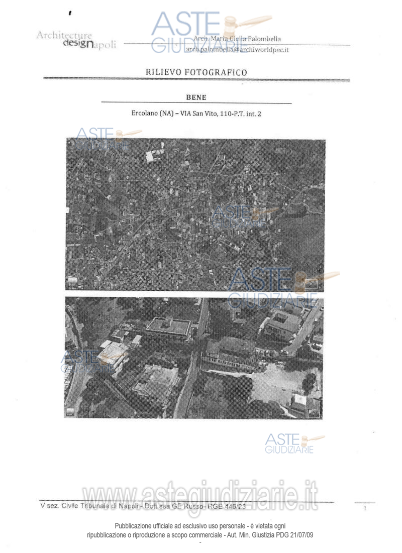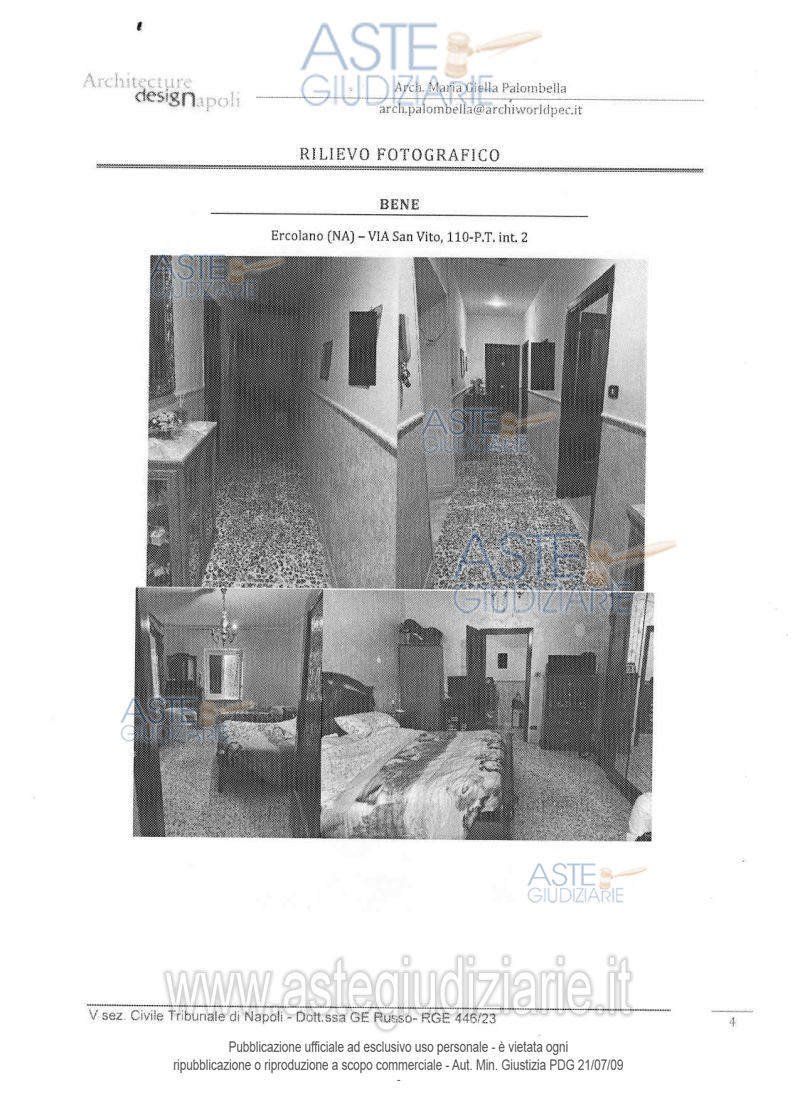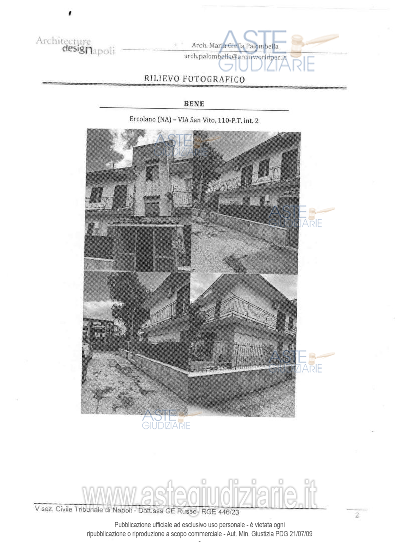 Vendita all'asta Senza incanto, con gara telematica asincrona - LOTTO UNICO: Unità immobiliare ad uso residenziale ubicata in Ercolano (Na) alla via San Vito n. 110 (già via Osservatorio n. 106), scala U, piano T, interno 2, composta da corridoio d’ingresso, cucina abitabile, due camere, unico servizio igienico e un piccolo ripostiglio, con una superficie lorda di 93 mq. Prezzo base € 34.425,00 (offerta minima € 25.819,00). Data inizio operazioni di vendita: 04/03/2026 ore 10:00. Giudice Maria Ludovica Russo. Professionista delegato alla vendita Dott. Giovanni Esposito - Email "segreteria@espositopartners.it"; Tel. 0818449234. Custode Giudiziario Dott. Giovanni Esposito - Email "segreteria@espositopartners.it"; Tel. 0818449234. Rif. Tribunale di Napoli - Espropriazione immobiliare (cartabia) n. 446/2023