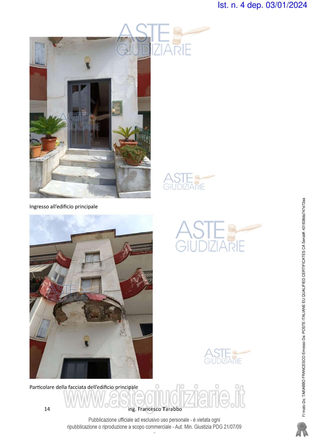Vendita all'asta Senza incanto, con gara telematica asincrona - LOTTO UNICO: Piena ed intera proprietà dell’appartamento in Ercolano alla Via Vesuvio n. 46 (catastalmente n. 22/B), int. 1 Piano terra, composto da: ingresso, corridoio, soggiorno/cucina, bagno, ripostiglio e 3 vani, oltre ad un portico esterno. Riportato in catasto al foglio 9, part. 169, Sub 1, Cat. A/2, Consistenza 4,5 vani; confinante a Nord con proprietà aliena, a Est e Sud con terrapieno, ad Ovest con cortile comune. Prezzo base € 41.696,25 (offerta minima € 31.272,19). Data inizio operazioni di vendita: 10/03/2026 ore 16:00. Custode Giudiziario Avv. Manuela Avino - Email "ma.avino@tiscali.it"; Tel. 0815603189. Rif. Tribunale di Napoli - Espropriazione immobiliare (cartabia) n. 258/2023