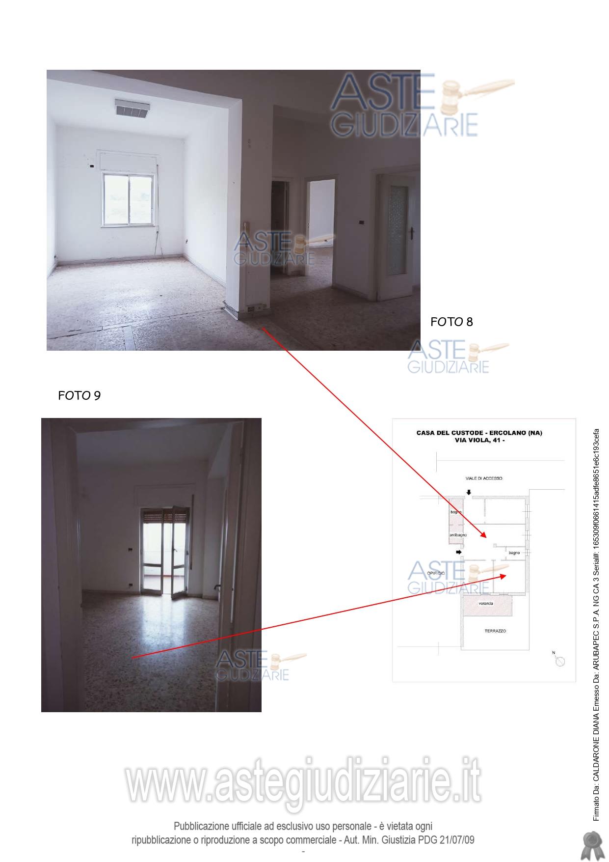 Vendita all'asta Senza incanto, con gara telematica asincrona - LOTTO UNICO: Piena ed intera proprietà di appartamento facente parte di un opificio situato in Ercolano (NA) – Via Viola, 41 – Piano terra - mq 140. Prezzo base € 97.000,00 (offerta minima € 72.750,00). Data inizio operazioni di vendita: 13/01/2026 ore 14:30. Professionista delegato alla vendita Avv. Paola Capobianco - Email "paolacapobianco@alice.it"; Cell. 3808466812; Tel. 081405408. Custode Giudiziario Avv. Paola Capobianco - Email "paolacapobianco@alice.it"; Cell. 3808466812; Tel. 081405408. Rif. Tribunale di Napoli - Espropriazione immobiliare (cartabia) n. 247/2023
