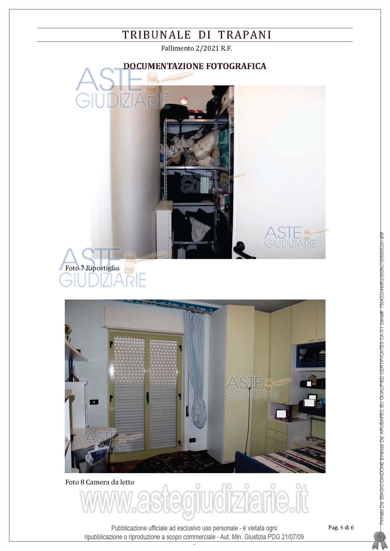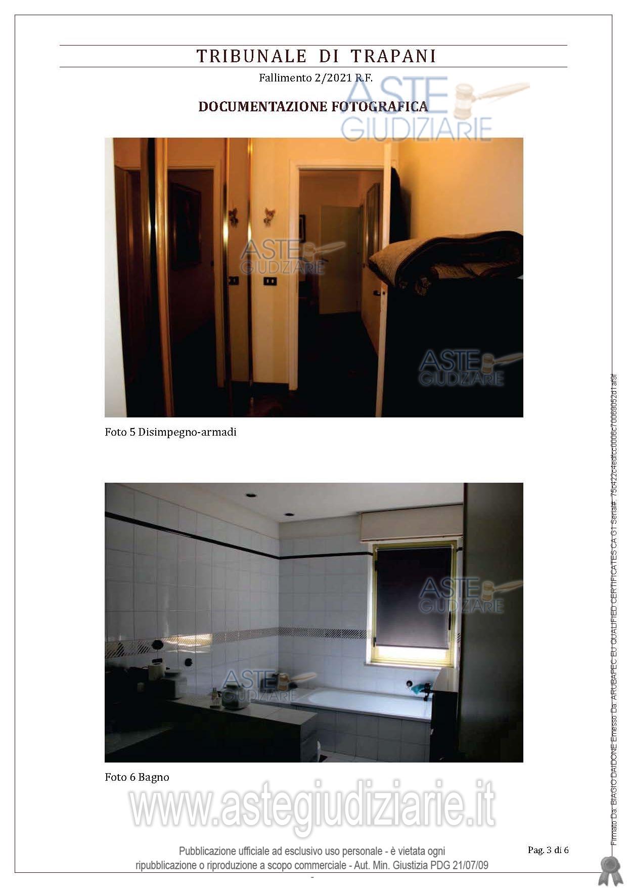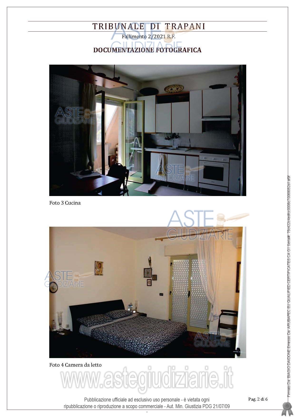 Vendita all'asta Senza incanto, con gara telematica asincrona - LOTTO UNICO: Appartamento per civile abitazione posto al piano sesto della palazzina B Condominio Residence dei Pini, composto da ingresso-soggiorno, ampio salone, cucina, disimpegno, camera da letto, bagno , ripostiglio, due camere da letto e w.c. Prezzo base € 246.000,00 (offerta minima € 184.500,00). Data inizio operazioni di vendita: 24/06/2026 ore 12:00. Professionista delegato alla vendita Avv. Roberto Guarnotta - Email "roberto.guarnotta@avvocatitrapani.legalmail.it"; Cell. 3381720459. Rif. Tribunale di Trapani - Fallimentare (nuovo rito) n. 2/2021