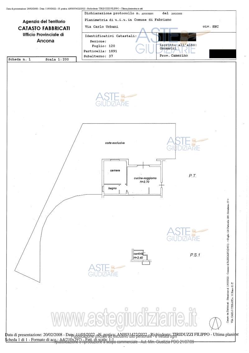 Vendita all'asta Senza incanto, con gara telematica asincrona - LOTTO 1: Lotto 1Piena proprietà (1/1) di porzione di fabbricato sito a Fabriano (An) in via Carlo Urbani n° 15(interno 3), composta da un appartamento sito al piano terra costituito da cucina/soggiornodal quale si accede alla corte esclusiva, camera matrimoniale, disimpegno e bagno, oltrecantina e posto auto al piano interrato. Prezzo base € 29.079,00 (offerta minima € 21.810,00). Data inizio operazioni di vendita: 23/04/2026 ore 09:00. Professionista delegato alla vendita Avv. Pamela Bracalente - Email "pamelabracalente@libero.it"; Tel. 0712900706. Custode Giudiziario Avv. Roberta Gioia - Email "avvrobertagioia@libero.it"; Cell. 3496016764. Rif. Tribunale di Ancona - Esecuzione immobiliare post legge 80 n. 299/2021