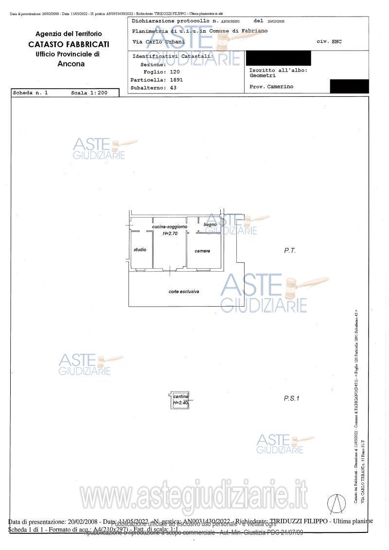 Vendita in attesa dell'emissione del nuovo bando d'asta. LOTTO 7: Lotto 7Piena proprietà (1/1) di porzione di fabbricato sito a Fabriano (An) in via Carlo Urbani n° 15(interno 1), composta da un appartamento sito al piano terra costituito da cucina/soggiornodal quale si accede alla corte esclusiva, camera matrimoniale, studio, disimpegno e bagno,oltre cantina e posto auto al piano interrato. Ultimo prezzo base € 30.336,00 (offerta minima € 22.752,00). Professionista delegato alla vendita Avv. Pamela Bracalente - Email "pamelabracalente@libero.it"; Tel. 0712900706. Custode Giudiziario Avv. Roberta Gioia - Email "avvrobertagioia@libero.it". Rif. Tribunale di Ancona - Esecuzione immobiliare post legge 80 n. 299/2021