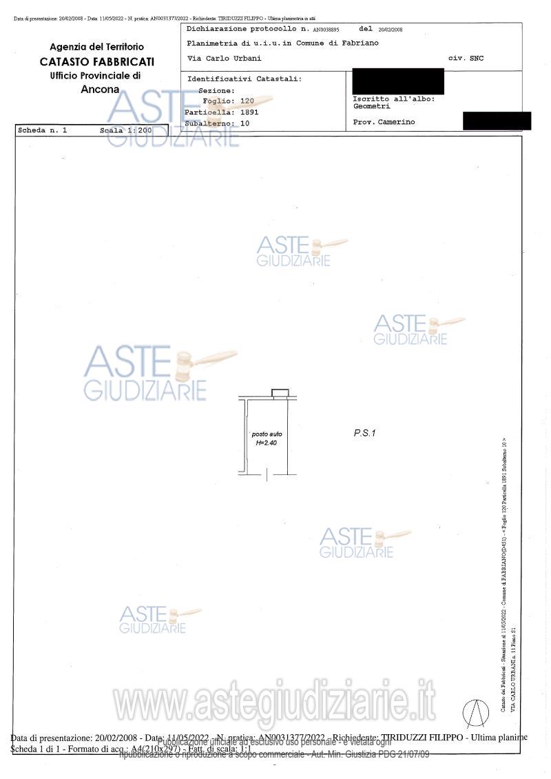 Vendita all'asta Senza incanto, con gara telematica asincrona - LOTTO 8: Lotto 8Piena proprietà (1/1) di porzione di fabbricato sito a Fabriano (An) in via Carlo Urbani n° 15(interno 4), composta da un appartamento sito al piano terra costituito da cucina/soggiorno,camera matrimoniale, studio, disimpegno e bagno, oltre cantina e posto auto al pianointerrato. Prezzo base € 26.277,00 (offerta minima € 19.708,00). Data inizio operazioni di vendita: 23/04/2026 ore 09:15. Professionista delegato alla vendita Avv. Pamela Bracalente - Email "pamelabracalente@libero.it"; Tel. 0712900706. Custode Giudiziario Avv. Roberta Gioia - Email "avvrobertagioia@libero.it"; Cell. 3496016764. Rif. Tribunale di Ancona - Esecuzione immobiliare post legge 80 n. 299/2021