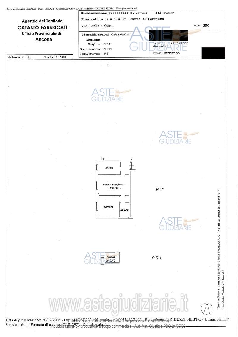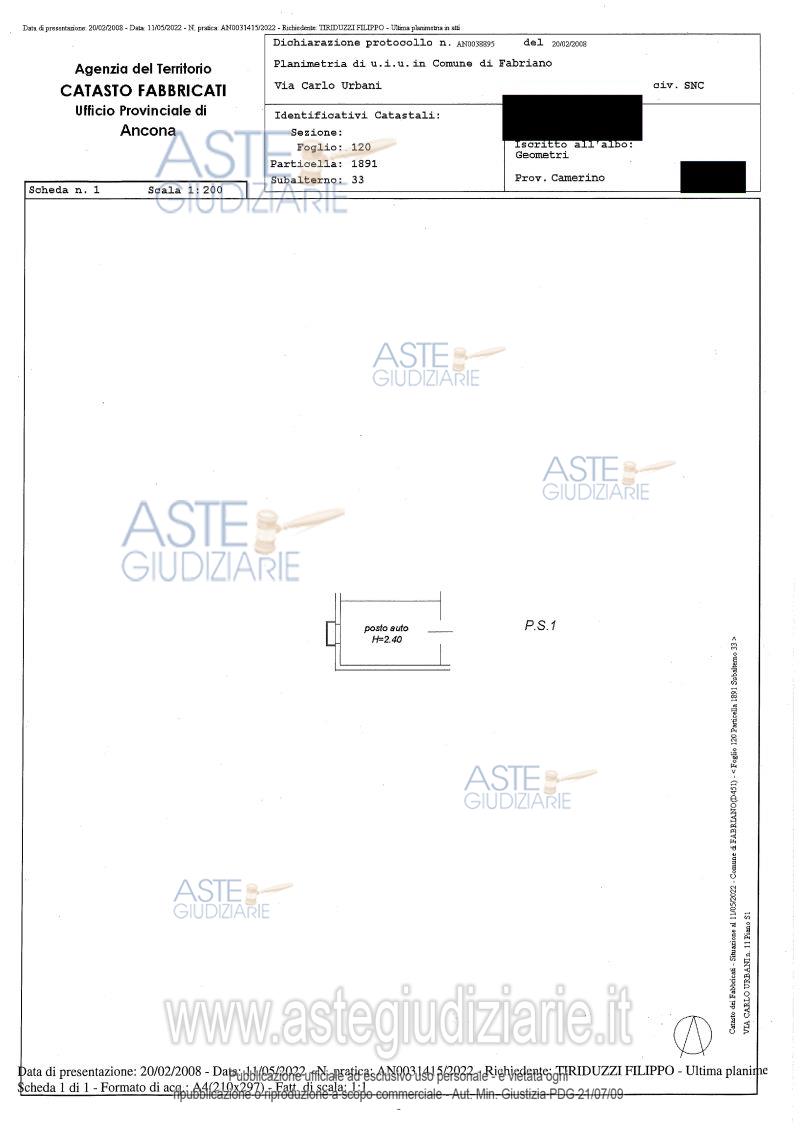 Vendita all'asta Senza incanto, con gara telematica asincrona - LOTTO 21: Lotto 21: Piena proprietà (1/1) di porzione di fabbricato sito a Fabriano (An) in via Carlo Urbani n° 11(interno 7), composta da un appartamento sito al piano primo costituito da cucina/soggiorno, camera matrimoniale, disimpegno e bagno, oltre cantina e posto auto al piano interrato. Prezzo base € 20.421,00 (offerta minima € 15.316,00). Data inizio operazioni di vendita: 23/04/2026 ore 09:15. Professionista delegato alla vendita Avv. Pamela Bracalente - Email "pamelabracalente@libero.it"; Tel. 0712900706. Custode Giudiziario Avv. Roberta Gioia - Email "avvrobertagioia@libero.it"; Cell. 3496016764. Rif. Tribunale di Ancona - Esecuzione immobiliare post legge 80 n. 299/2021