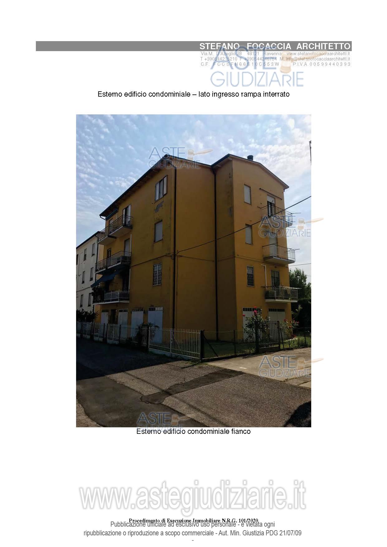 Vendita all'asta Senza incanto, con gara telematica asincrona - LOTTO UNICO: Piena proprietà di appartamento al piano primo oltre ad autorimessa/sgombero al piano terra . Superficie catastale totale di ca mq 86,00. Da liberarsi all'emissione del decreto di trasferimento. Prezzo base € 82.000,00 (offerta minima € 62.000,00). Data inizio operazioni di vendita: 17/11/2025 ore 10:00. Giudice Dott. Paolo Gilotta. Professionista delegato alla vendita Avv. Cristina Ingoli - Email "avv.ingoli@studioingoli.it"; Tel. 0544407200. Custode Giudiziario Avv. Cristina Ingoli - Email "avv.ingoli@studioingoli.it"; Tel. 0544407200. Rif. Tribunale di Ravenna - Esecuzione immobiliare post legge 80 n. 101/2020