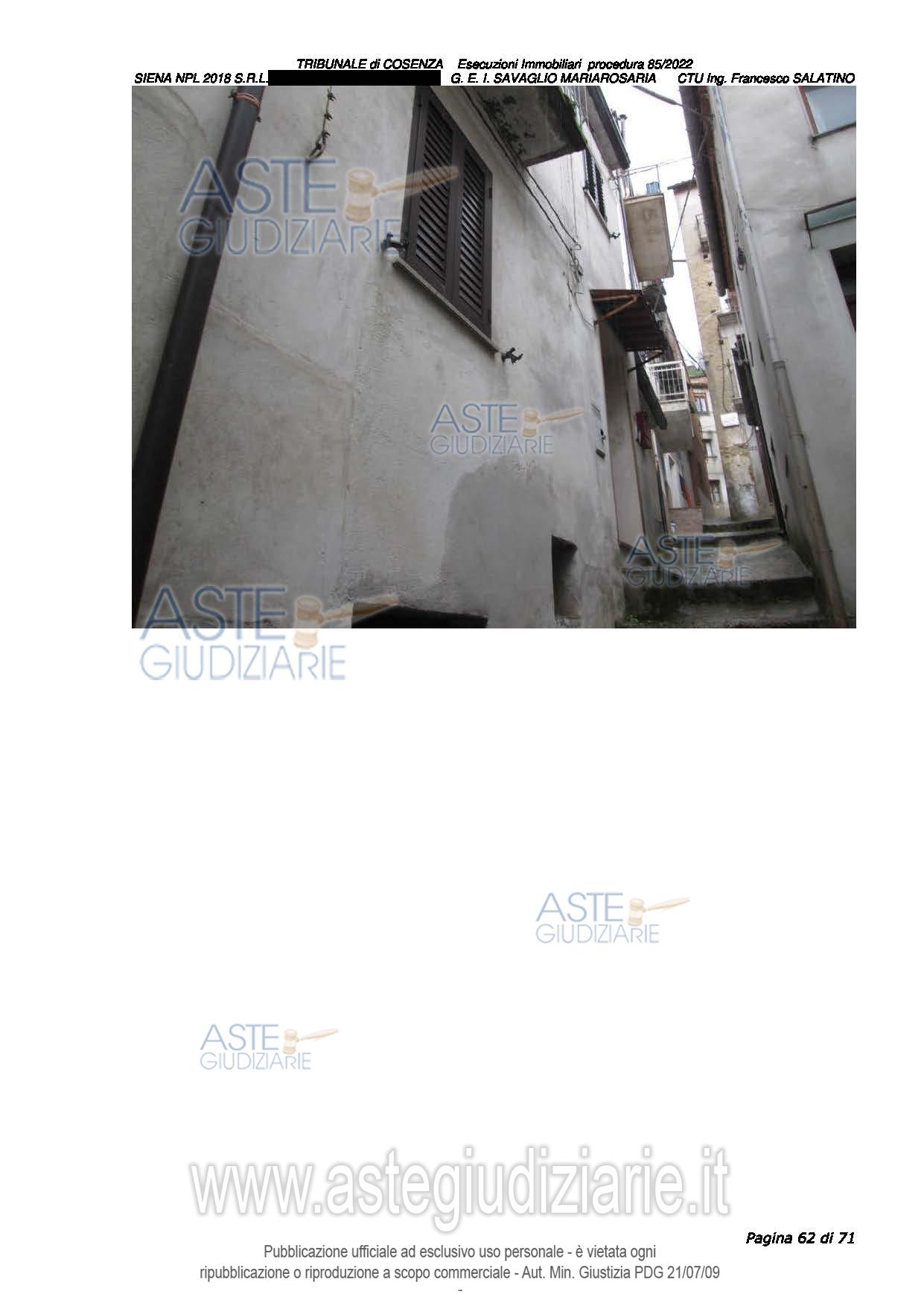 Vendita all'asta Senza incanto, con gara telematica sincrona mista - LOTTO UNICO: Unità immobiliare sviluppantesi su due livelli, piano terra e piano primo, oltre sottotetto non abitabile e locale fondazioni, avente superfice catastale/commerciale di mq 151,49. Prezzo base € 52.941,57 (offerta minima € 39.706,18). Data vendita 24/06/2026 ore 10:30. Giudice Dott. Assunta Gioia. Professionista delegato alla vendita Dott. Silvia Intrieri - Email "silviaintrieri@alice.it"; Tel. 3394023348. Custode Giudiziario Dott. Silvia Intrieri - Email "silviaintrieri@alice.it"; Tel. 3394023348. Rif. Tribunale di Cosenza - Esecuzione immobiliare post legge 80 n. 85/2022