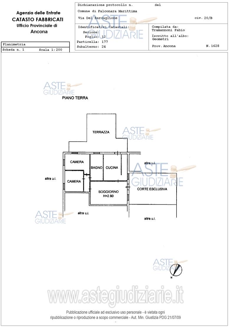 Vendita all'asta Senza incanto, con gara telematica asincrona - LOTTO 2: Abitazione disposta al piano terra con ingresso indipendente, terrazzo e corte esclusiva, facente parte di un condominio su quattro piani oltre al piano interrato ad uso garage. Per accedere a tale compendio si arriva dalla via principale Barcaglione e si imbocca una strada secondaria sempre avente la stessa toponomastica ed ampia dove è facile trovare parcheggio. Prezzo base € 196.934,40 (offerta minima € 147.700,80). Data inizio operazioni di vendita: 14/04/2026 ore 11:00. Giudice Dott. Giuliana Filippello. Professionista delegato alla vendita Rag. Daniela Marra. Custode Giudiziario Rag. Daniela Marra - Email "fiscale@studio-marra.it"; Tel. 0712082827. Rif. Tribunale di Ancona - Espropriazione immobiliare (cartabia) n. 201/2024