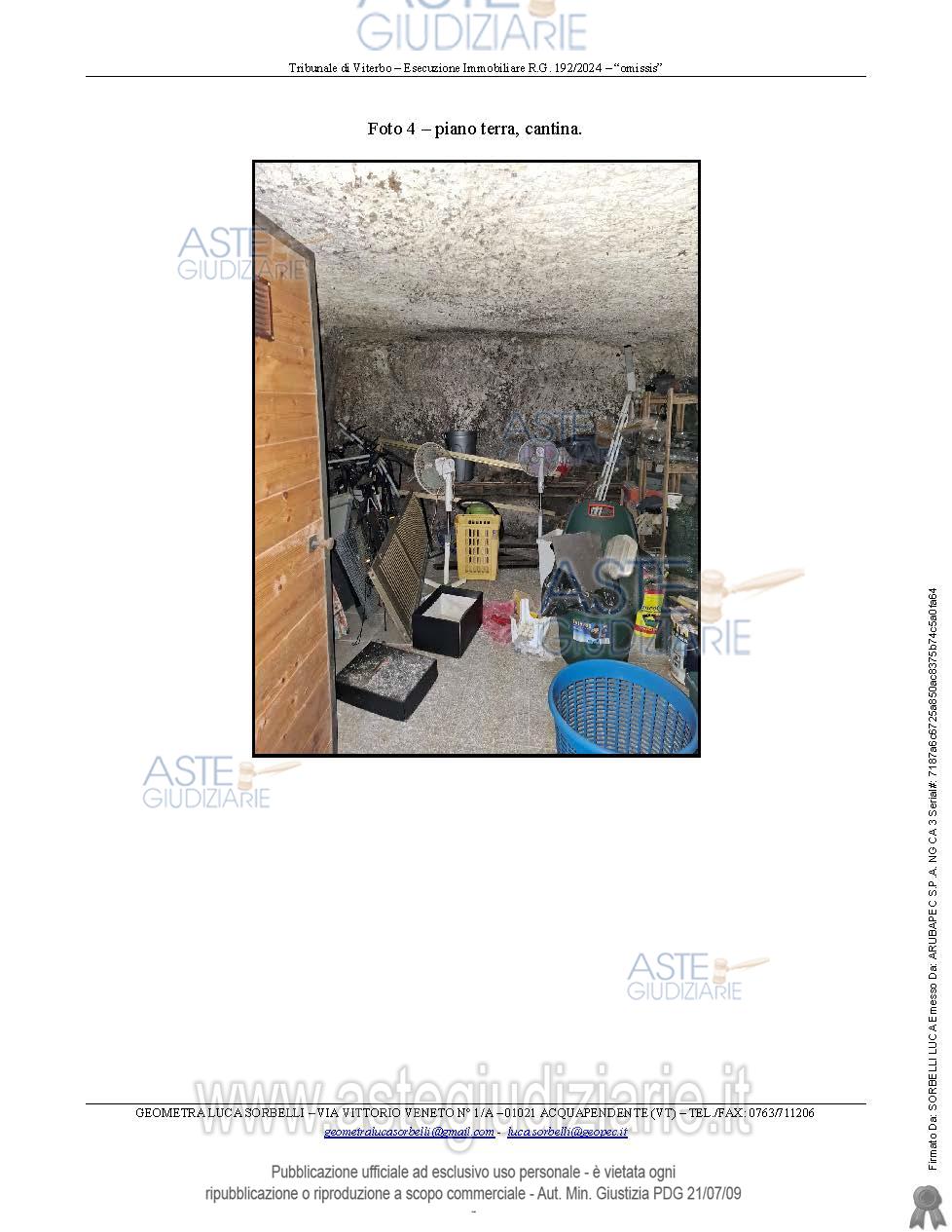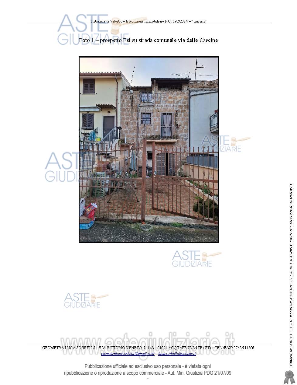 Vendita all'asta Senza incanto, con gara telematica asincrona - LOTTO UNICO: Diritti di piena proprietà pari a 1/1 della porzione immobiliare ad uso abitazione sita nel comune di Faleria (VT) Via delle Cascine n. 34, dislocata ai piani terra, primo e secondo, riportata al N.C.E.U. al foglio 13, particella 707, categoria A/3, classe 1, vani 4, r.c. euro 216,91.All’abitazione si accede tramite un’area scoperta esclusiva di circa 40 mq., corredata da cancello in ferro carrabile da via delle Cascine 34. Per maggiori dettagli si rimanda alla perizia del tecnico. Prezzo base € 21.960,00 (offerta minima € 16.470,00). Data inizio operazioni di vendita: 15/04/2026 ore 11:40. Giudice Federico Bonato. Professionista delegato alla vendita Dott. Roberto Migliorati. Custode Giudiziario Dott. Roberto Migliorati - Email "studio_migliorati@libero.it"; Tel. 0761325252. Rif. Tribunale di Viterbo - Espropriazione immobiliare (cartabia) n. 192/2024