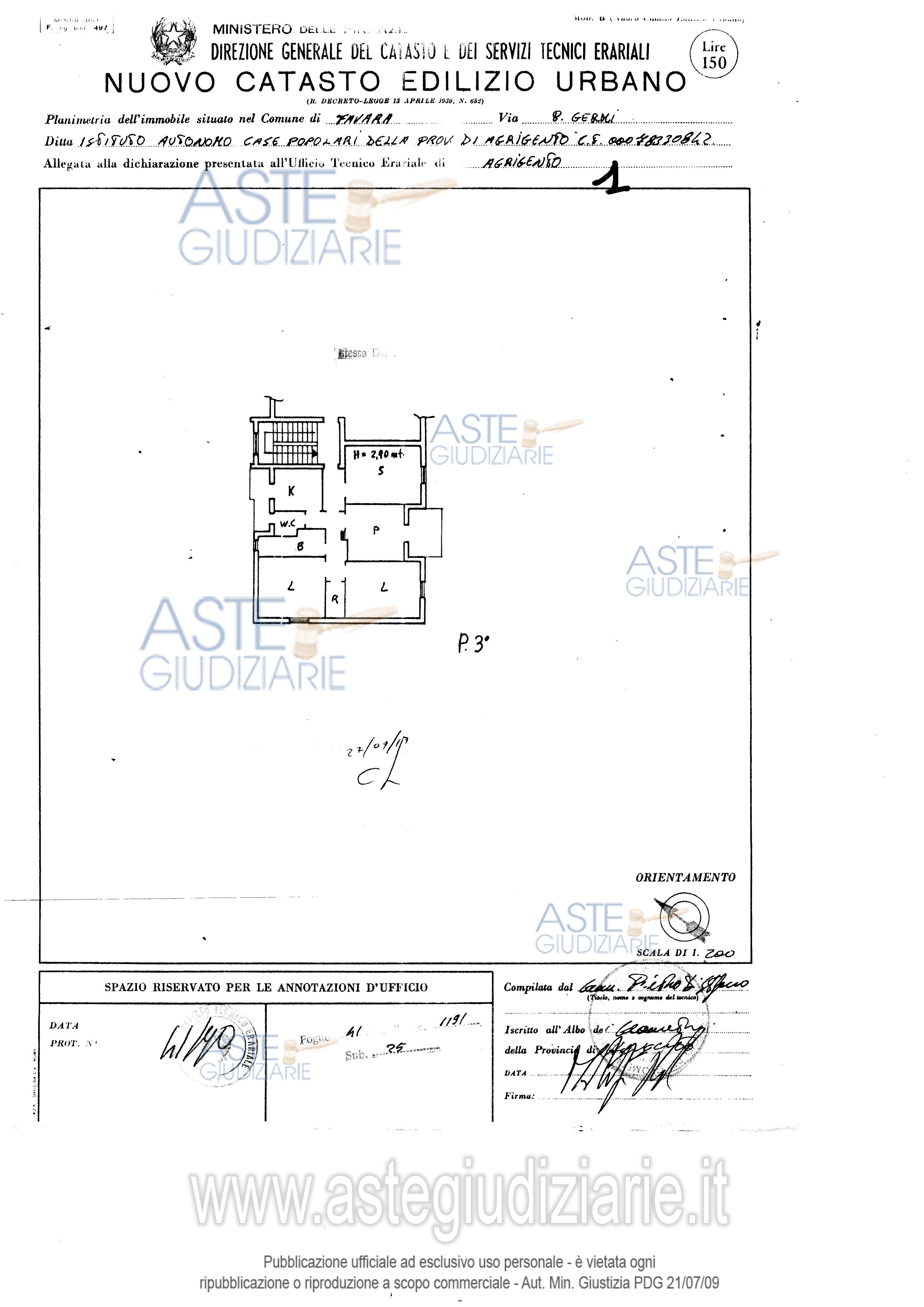 Vendita all'asta Senza incanto, con gara telematica sincrona mista - LOTTO UNICO: Piena proprietà per la quota di 1000/1000 di appartamento facente parte di una palazzina di n. 8 alloggi, composto da due camere da letto, sala, wc, ripostiglio e cucina abitabile, disimpegnati da un corridoio centrale, posto al 3° piano, con accesso da scala condominiale senza ascensore, superficie lorda (comprensiva di muri perimetrali e balconi) 142,28 mq. Prezzo base € 21.937,50 (offerta minima € 16.453,12). Data vendita 17/06/2026 ore 10:30. Giudice Vitalba Pipitone. Professionista delegato alla vendita Avv. Simone Landri - Email "avvsimonelandri@gmail.com"; Cell. 3387206014; Tel. 0922080119. Custode Giudiziario Avv. Simone Landri - Email "avvsimonelandri@gmail.com"; Cell. 3387206014; Tel. 0922080119. Rif. Tribunale di Agrigento - Esecuzione immobiliare post legge 80 n. 69/2015