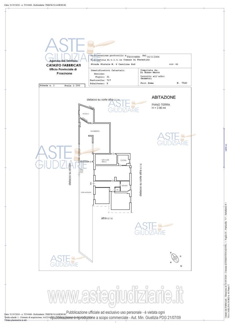 Vendita all'asta Senza incanto, con gara telematica asincrona - LOTTO UNICO:  Piena proprietà di Porzione d’immobile ubicato a Ferentino (FR) - Via Pietralata 13 (ex Via Casilina Nord 61) in catasto Fabbricati - Fg. 31, Part. 717, Sub. 8, Zc. 1, Categoria A2, rendita catastale euro 402,84, prezzo base euro 46.687,50, offerta minima Euro 35.015,62, offerta in aumento euro 5.000,00, G.E. Simona Di Nicola. Prezzo base € 46.687,50 (offerta minima € 35.015,62). Data inizio operazioni di vendita: 04/11/2025 ore 15:00. Giudice Simona Di Nicola. Professionista delegato alla vendita Avv. Daniele Mieli - Email "mielidani78@gmail.com"; Cell. 3929797698; Tel. 0775872331. Custode Giudiziario  Avv. Daniele Mieli - Email "mielidani78@gmail.com"; Cell. 3929797698; Tel. 0775872331.  Rif. Tribunale di Frosinone - Espropriazione immobiliare (cartabia) n. 45/2024