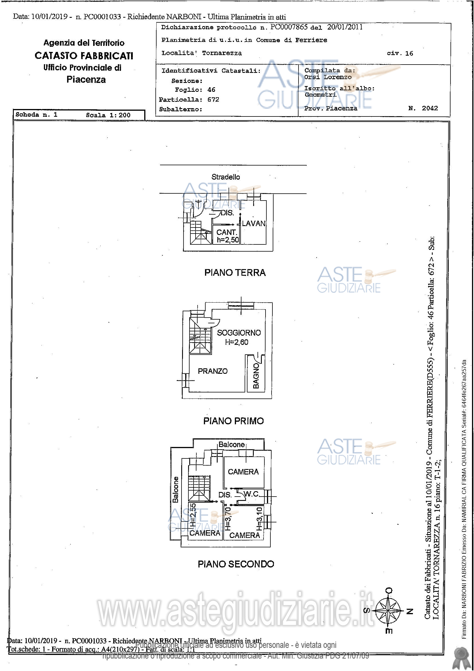 Custode Giudiziario: Avv. Cristiana Mazzoni - Email "cristiana.mazzoni84@gmail.com"; Tel. 0523/338459.