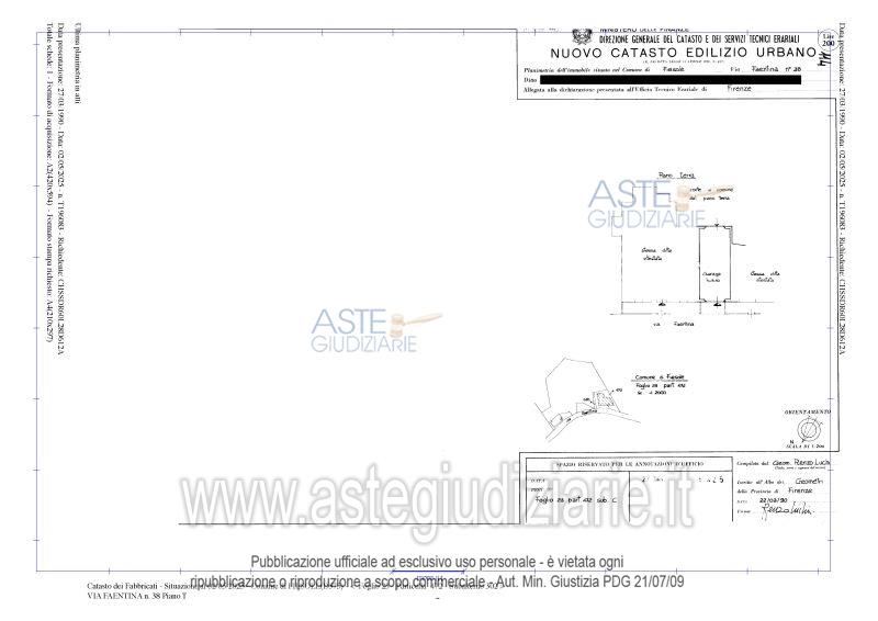 Vendita all'asta Senza incanto, con gara telematica asincrona - LOTTO 1: Piena proprietà di appartamento ad uso civile abitazione oltre alla proprietà per la quota di 1/4 autorimessa posti al piano terreno di un più ampio fabbricato ubicato nel comune di Fiesole (FI), in via Faentina n. 38. Prezzo base € 59.550,00 (offerta minima € 44.662,50). Data inizio operazioni di vendita: 26/05/2026 ore 10:30. Rif. Tribunale di Firenze - Esecuzione immobiliare n. 44/2025