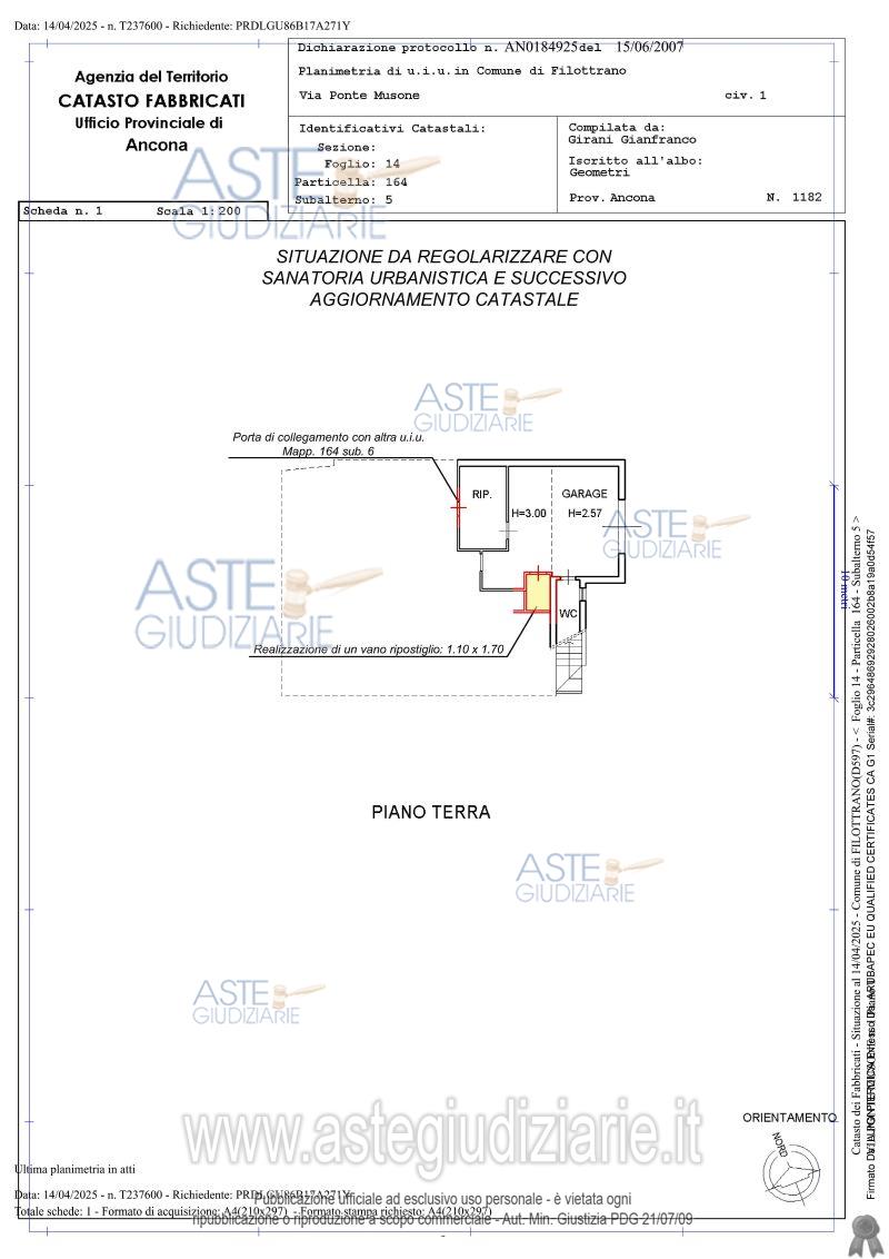 Vendita all'asta Senza incanto, con gara telematica asincrona - LOTTO UNICO: Diritto piena di proprietà (1/1) di porzione del fabbricato sito in Comune di Filottrano costituita da un appartamento ad uso civile abitazione. Prezzo base € 53.403,20 (offerta minima € 40.053,00). Data inizio operazioni di vendita: 16/06/2026 ore 10:00. Professionista delegato alla vendita: Avv. Maurizio Barbieri.