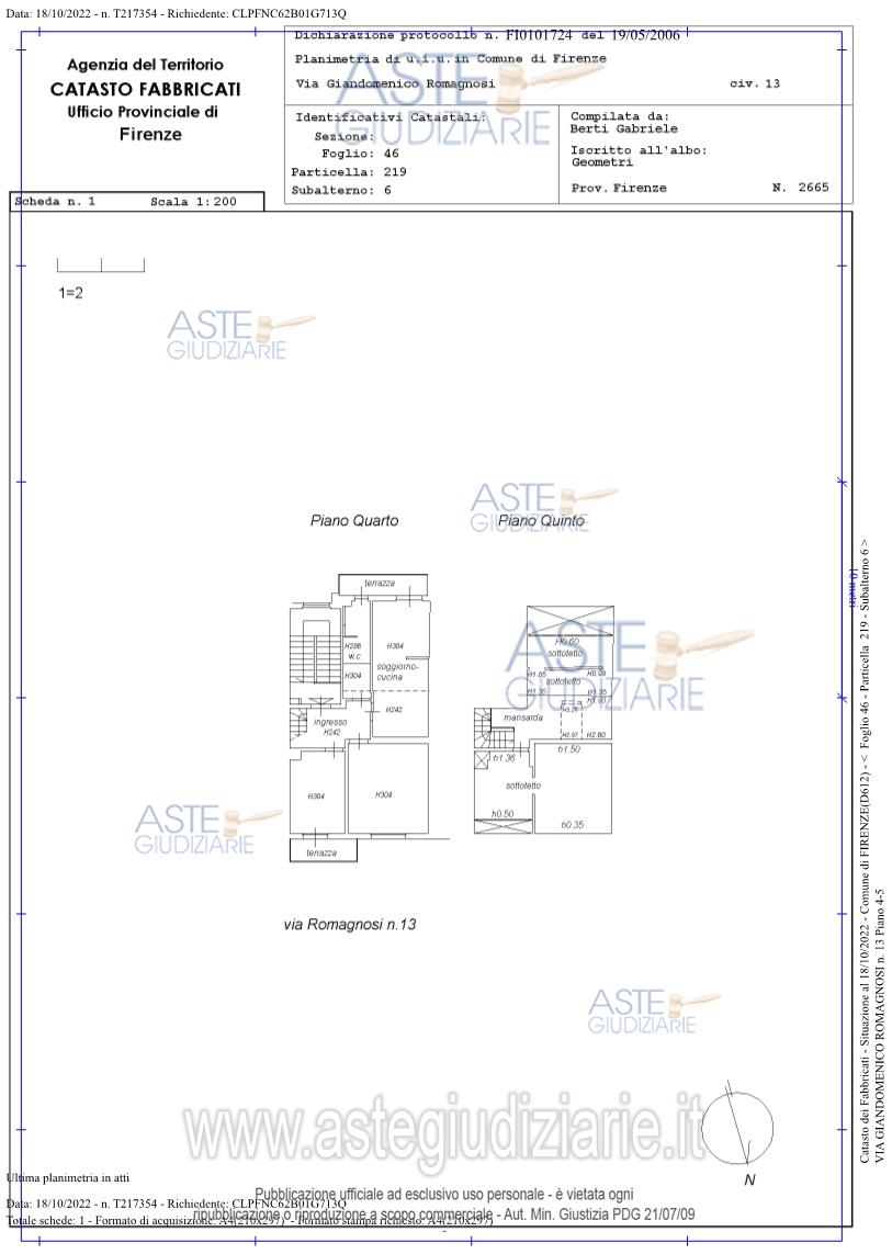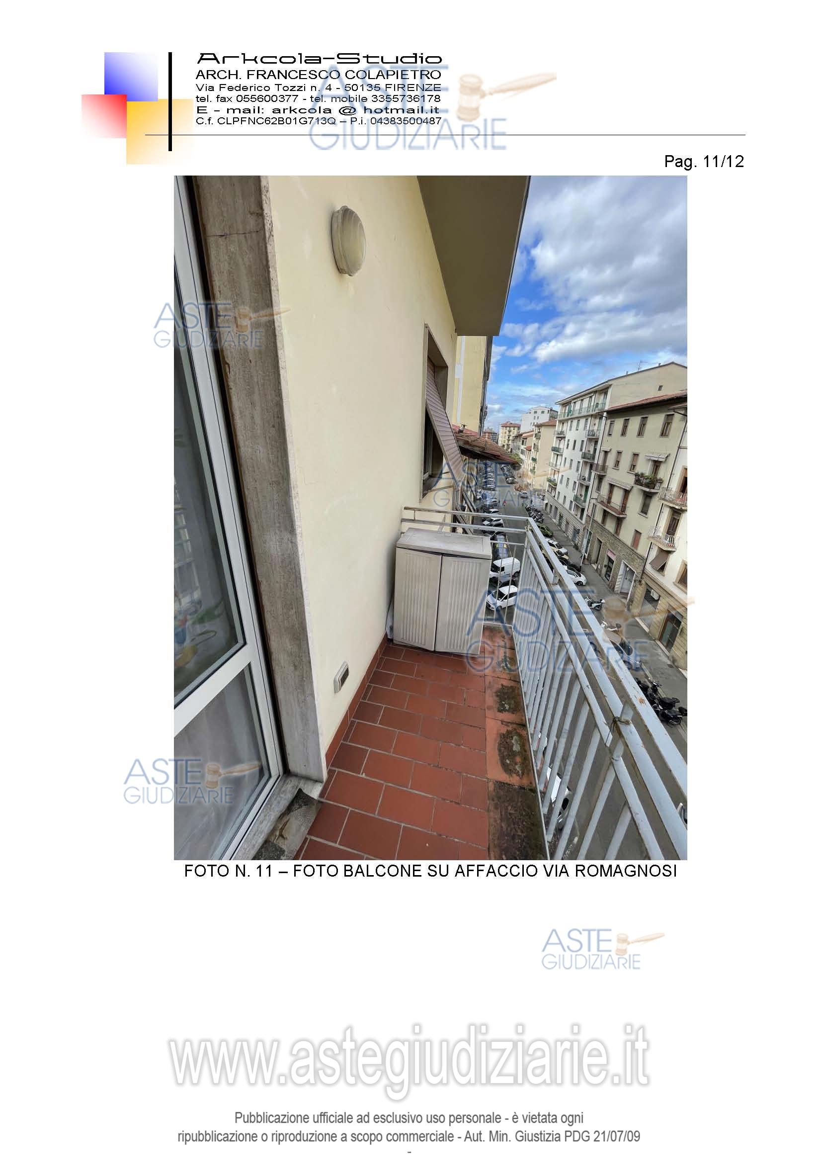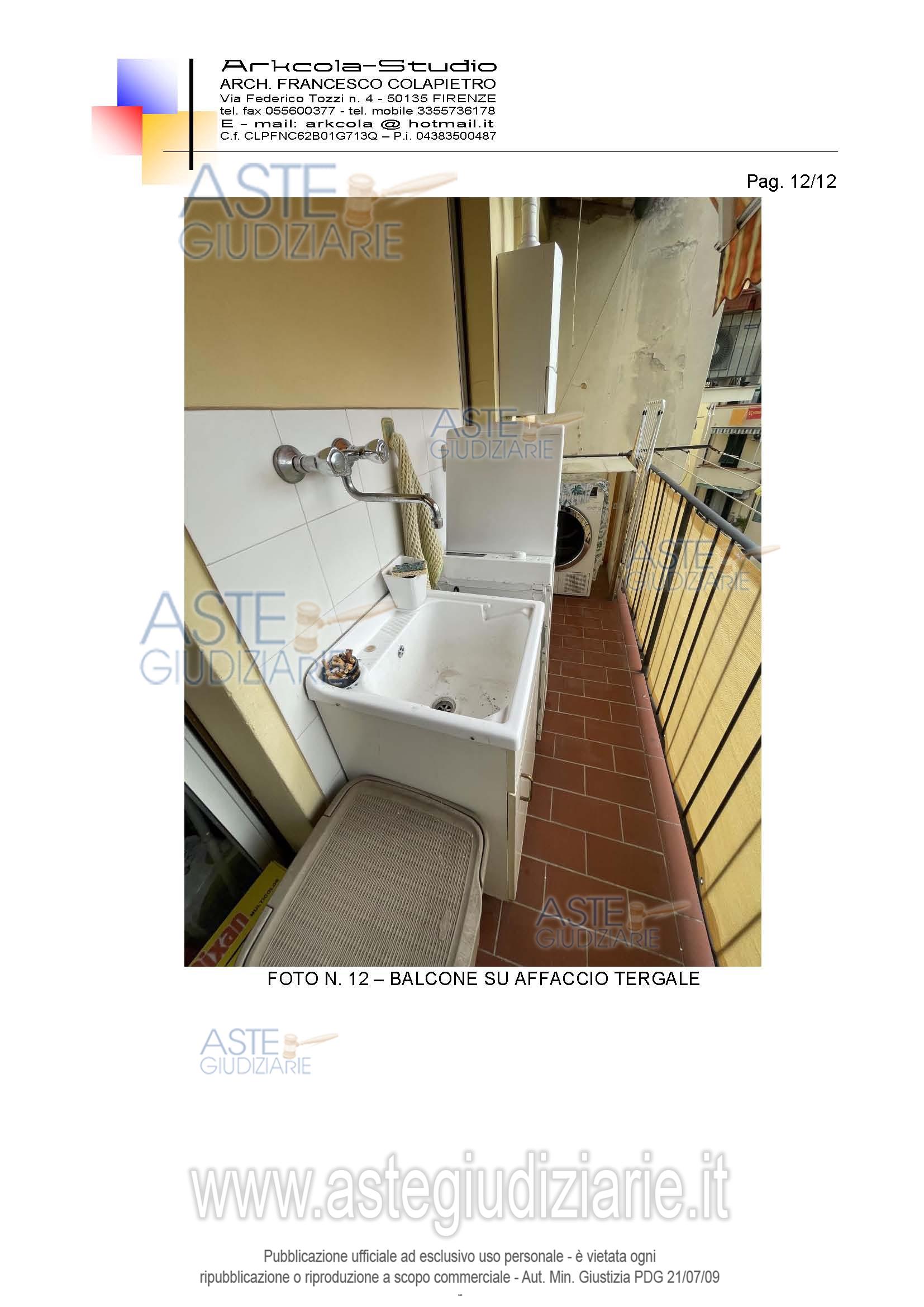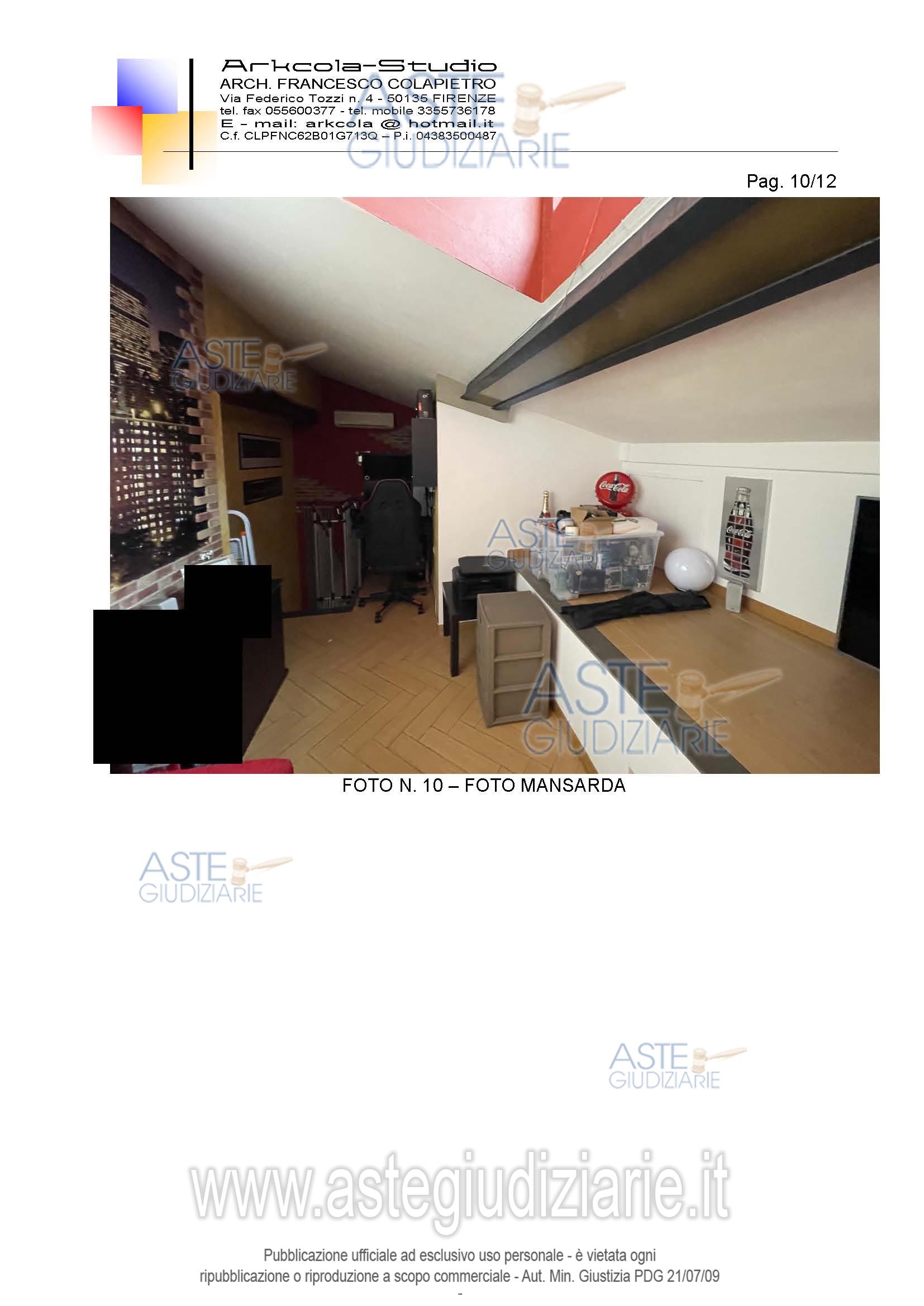 Vendita all'asta Senza incanto, con gara telematica sincrona - LOTTO UNICO: Appartamento, quale porzione di un edificio pluripiano a destinazione residenziale, posto al piano quarto e quinto sottotetto. L'appartamento è distribuito su due livelli con ingresso-disimpegno, soggiorno-pranzo con annesso angolo cottura, due camere, un bagno, un balcone anteriore e un balcone tergale posti al quarto piano. Al quinto piano sottotetto, a cui si accede da una scala interna, vi è una mansarda oltre a locali uso ripostiglio nella residua porzione sottotetto. Prezzo base € 182.000,00 (offerta minima € 136.500,00). Data vendita 23/06/2026 ore 16:00. Giudice Francesca Romana Bisegna. Professionista delegato alla vendita Avv. Antonio Rovini - Email "rovini@studiolegaleassociato.org". Custode Giudiziario Istituto Vendite Giudiziarie Di Firenze - Email "prenota.fi@isveg.it"; Tel. 0552340830. Rif. Tribunale di Firenze - Contenzioso civile n. 1182/2024