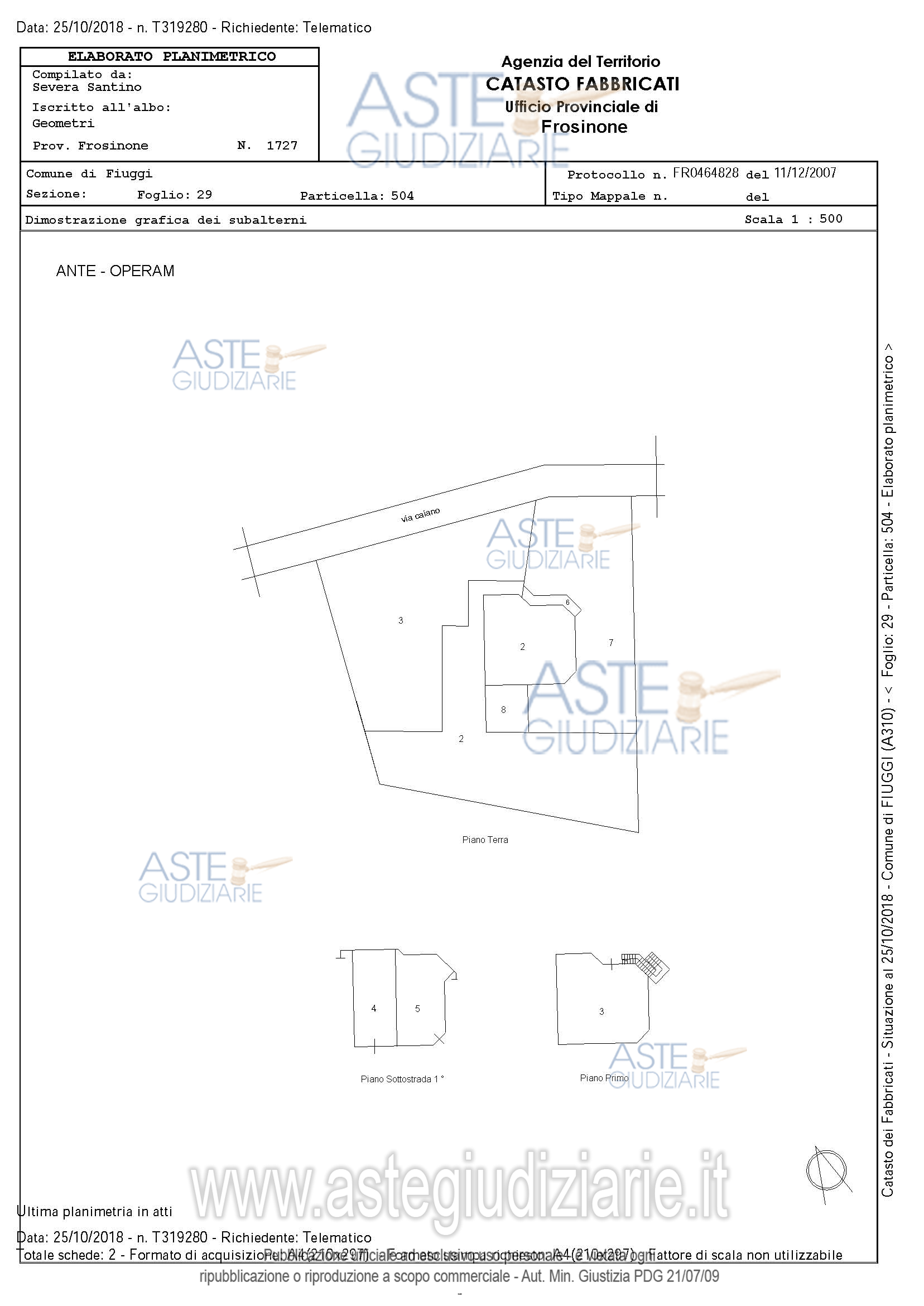 Vendita all'asta Senza incanto, con gara telematica asincrona - LOTTO 1: Bene 1: Piena proprietà appartamento in Fiuggi (FR), Via Caiano snc al piano terra di un fabbricato di maggior consistenza di due piani fuori terra ed uno interrato, con struttura portante in cemento armato, con area cortilizia adibita a giardino di circa 190,60mq. Bene 2: Piena proprietà area urbana di circa mq. 255, in parte pianeggiante ed in parte in pendenza costituisce l'accesso al bene 1 dalla strada pubblica. Prezzo base € 47.175,00 (offerta minima € 35.390,00). Data inizio operazioni di vendita: 09/04/2026 ore 15:00. Giudice Francesco Ferdinandi. Professionista delegato alla vendita Avv. Lorenza Silvaggi - Email "lorenza.silvaggi@libero.it". Custode Giudiziario Avv. Lorenza Silvaggi - Email "lorenza.silvaggi@libero.it". Rif. Tribunale di Frosinone - Esecuzione immobiliare post legge 80 n. 190/2018