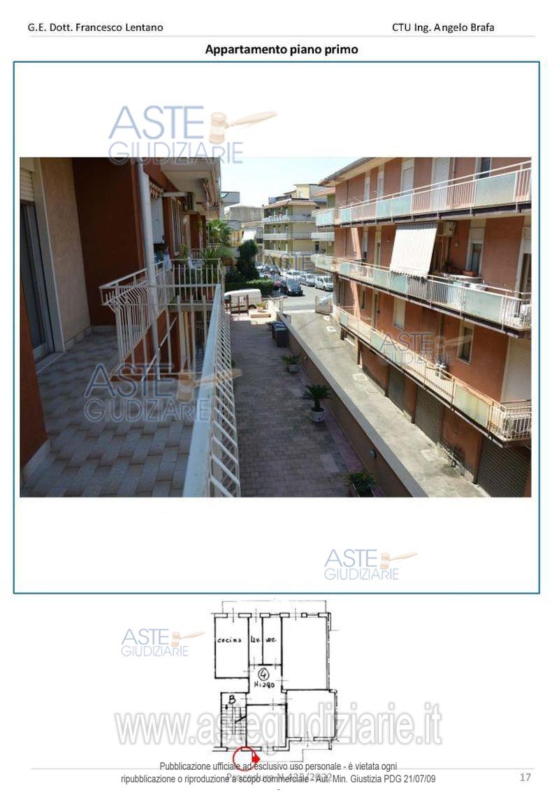 Vendita all'asta Senza incanto, con gara telematica sincrona mista - LOTTO UNICO: Appartamento, ubicato al piano primo, (seconda elevazione fuori terra), composto da tre ampi vani, cucina abitabile, vano ingresso, bagno, lavanderia, balcone sul prospetto principale e balcone sul prospetto secondario. Garage, ubicato al piano seminterrato. Prezzo base € 48.938,00 (offerta minima € 36.704,00). Data vendita 13/11/2025 ore 10:30. Giudice Maria Acagnino. Professionista delegato alla vendita Avv. Donatella Pappalardo - Email "donatella.pappalardo@worksoft.it"; Cell. 3483861455; Tel. 0957634747. Custode Giudiziario Avv. Donatella Pappalardo - Email "donatella.pappalardo@worksoft.it"; Cell. 3483861455; Tel. 0957634747. Rif. Tribunale di Catania - Esecuzione immobiliare post legge 80 n. 425/2022