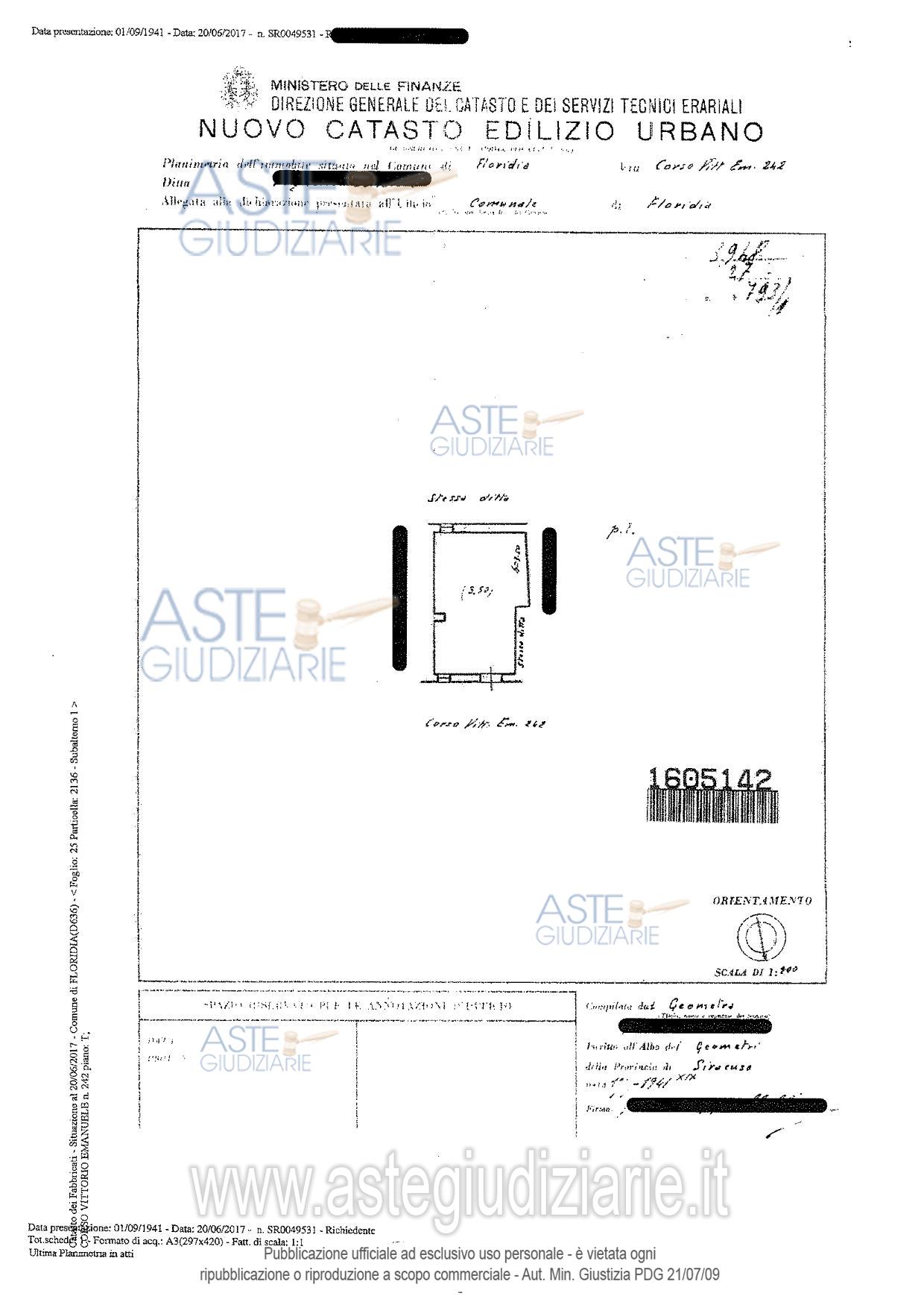 Vendita all'asta Senza incanto, con gara telematica sincrona mista - LOTTO 3: Quota di 1/1 del diritto di piena proprietà unità immobiliare sita in Floridia (SR) in via Polisena n. 195 (in visura è riportato il n. 169) al piano terra, identificata al catasto fabbricati del Comune di Floridia al foglio 25 p.lla 4768 (cat. A/3; cl. 3, consistenza 4,5 vani, superficie catastale tot 116 mq, r,c, € 227,76). Prezzo base € 26.000,00 (offerta minima € 19.500,00). Data vendita 22/04/2026 ore 10:00. Giudice Concita Cultrera. Professionista delegato alla vendita Avv. Simona Matarazzo - Email "avv.simona.matarazzo@gmail.com"; Tel. 0931096234. Rif. Tribunale di Siracusa - Contenzioso civile n. 4645/2023