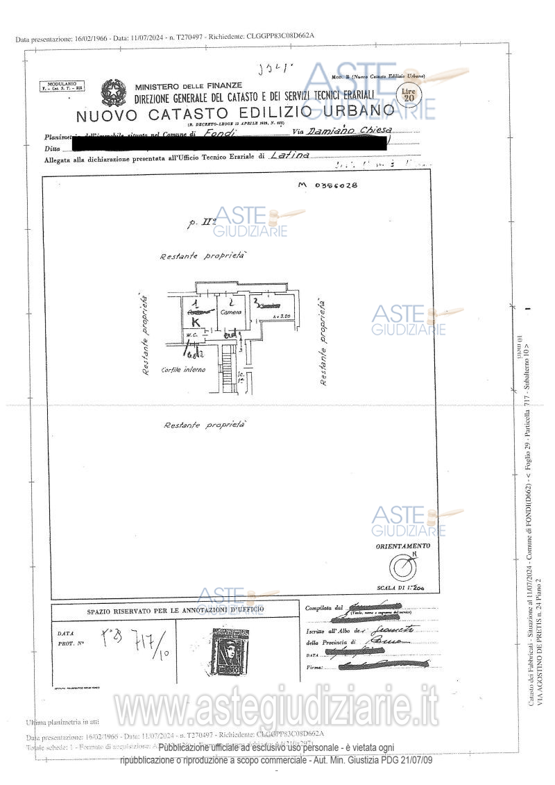Vendita all'asta Senza incanto, con gara telematica asincrona - LOTTO UNICO: Porzione del fabbricato costituita dalla piena proprietà dell’appartamento, piano secondo, composto da ingresso, cucina, sala, bagno e due camere, categoria A3, classe 2, consistenza 4 vani. Detto immobile comprende anche la proporzionale quota di comproprietà sulle parti comuni dell'edificio, spazi ed impianti in condominio di cui all'art. 1117 c.c. Prezzo base € 87.984,00 (offerta minima € 65.988,00). Data inizio operazioni di vendita: 10/02/2026 ore 12:00. Professionista delegato alla vendita Avv. Daniela Magliocchetti - Email "magliocchetti.daniela@gmail.com"; Cell. 3382778407; Tel. 3382778407. Custode Giudiziario Avv. Daniela Magliocchetti - Email "magliocchetti.daniela@gmail.com"; Cell. 3382778407; Tel. 3382778407. Rif. Tribunale di Latina - Espropriazione immobiliare (cartabia) n. 299/2023