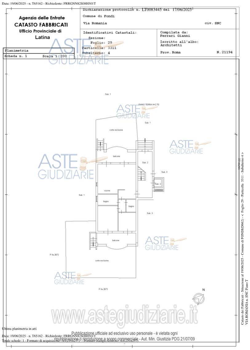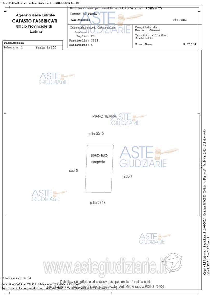 Vendita all'asta Senza incanto, con gara telematica asincrona - LOTTO 2: Bene N° 2: appartamento sito in Comune di Fondi (LT), Via Romania n. 12 censito nel catasto fabbricati al foglio 29 particella 3311 sub. 4. Bene 9: Posto auto coperto censito in catasto urbano al foglio 29 particella 3311 sub. 11 cat F/3. Bene n. 10: Posto auto coperto censito in catasto al foglio 29 particella 3311 sub 12 cat F/3. Bene n. 22: Posto auto scoperto censito nel catasto fabbricati al foglio 29 part. 3313 sub 6. Prezzo base € 133.000,00 (offerta minima € 99.750,00). Data inizio operazioni di vendita: 05/05/2026 ore 15:00. Giudice Alessandra Lulli. Professionista delegato alla vendita Dott. Walter Sillano - Email "walter.sillano@eassociato.com"; Tel. 0773368673. Custode Giudiziario Dott. Walter Sillano - Email "walter.sillano@eassociato.com"; Tel. 0773368673. Rif. Tribunale di Latina - Espropriazione immobiliare (cartabia) n. 291/2023