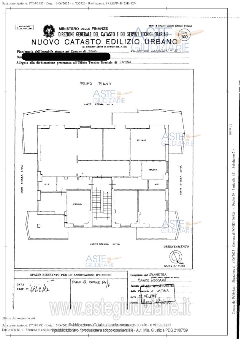 Vendita all'asta Senza incanto, con gara telematica asincrona - LOTTO UNICO: Bene n. 1 - Appartamento ubicato a Fondi (LT) - Via Antonio Salandra n. 12, piano Primo. L'immobile occupa l'intero livello del fabbricato (vi sono tre ingressi) ed è composto da ingressi/disimpegni vari, soggiorno, cucina, n. 3 bagni, n. 4 camere e n. 4 balconi di diverse metrature. Bene n. 2 - Garage ubicato a Fondi (LT) - Via Antonio Salandra n. 10, piano Terra. L'immobile si divide in due locali non comunicanti, uno più ampio di circa 14 mq, un altro più piccolo (uso cantina), di circa 3 mq. Prezzo base € 280.000,00 (offerta minima € 210.000,00). Data inizio operazioni di vendita: 26/05/2026 ore 16:00. Professionista delegato alla vendita Avv. Giuseppe Di Lorenzo - Email "giuseppe@studioangeloni.com"; Tel. 0773695039. Custode Giudiziario Avv. Giuseppe Di Lorenzo - Email "giuseppe@studioangeloni.com"; Tel. 0773695039. Rif. Tribunale di Latina - Espropriazione immobiliare (cartabia) n. 257/2024