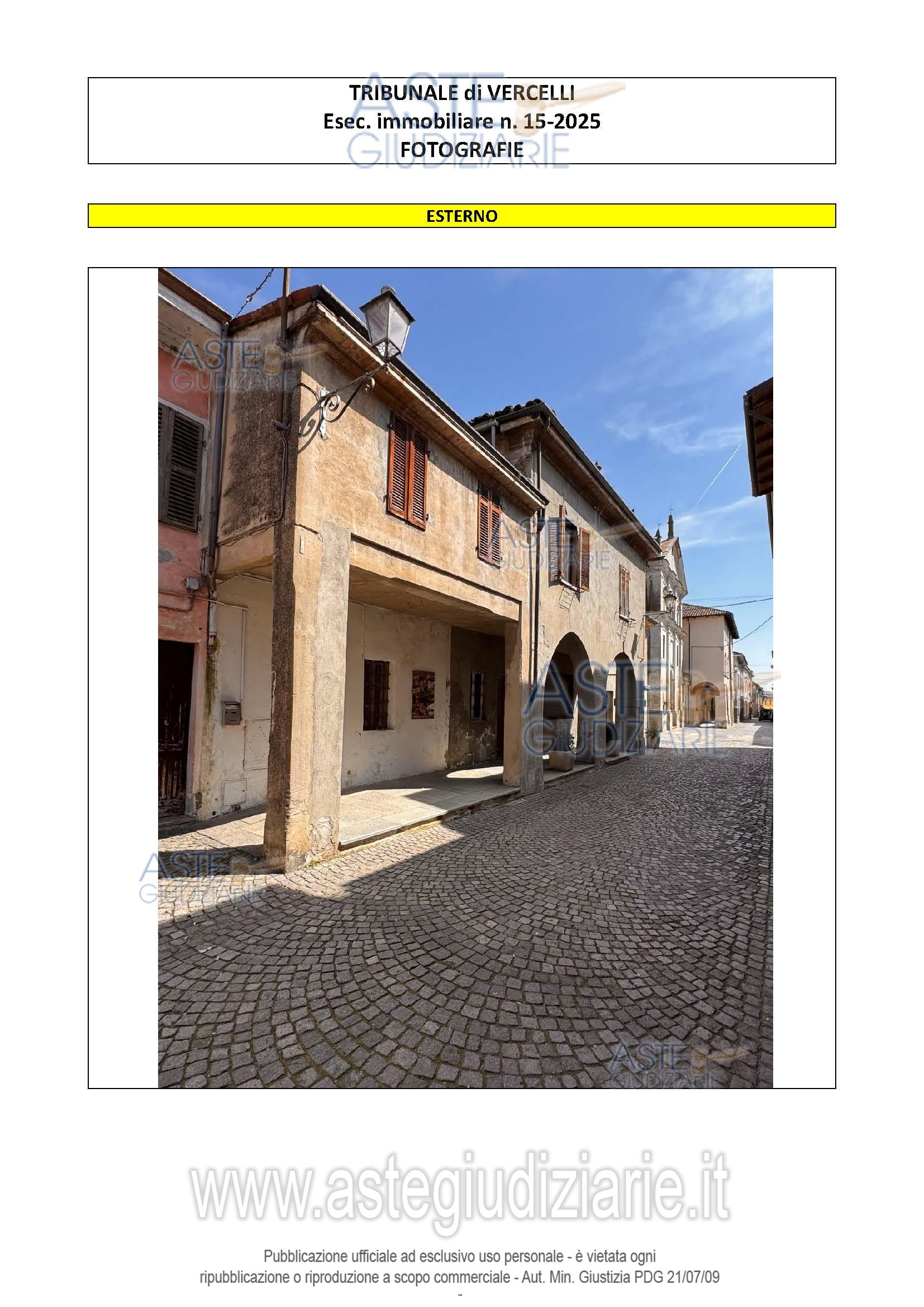 Vendita all'asta Senza incanto, con gara telematica asincrona - LOTTO UNICO: Edificio di civile abitazione a due piani fuori terra, a manica semplice, senza locali cantinati o seminterrati, con locale autorimessa e area pertinenziale ad uso esclusivo. Prezzo base € 40.125,00 (offerta minima € 30.093,75). Data inizio operazioni di vendita: 29/04/2026 ore 15:30. Giudice Annalisa Fanini. Professionista delegato alla vendita Avv. Franco Bussi - Email "f.bussi@studiolegalebussi.it"; Tel. 0161701034. Custode Giudiziario Avv. Franco Bussi - Email "f.bussi@studiolegalebussi.it"; Tel. 0161701034. Rif. Tribunale di Vercelli - Espropriazione immobiliare (cartabia) n. 15/2025
