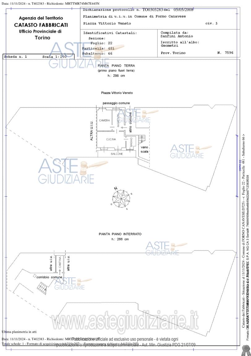 Vendita all'asta Senza incanto, con gara telematica asincrona - LOTTO 1: Porzione di fabbricato di civile abitazione sito in Piazza Vittorio Veneto civico n.3, facente parte di un complesso residenziale sito nel centro del paese, piano terreno, primo fuori terra: ingresso, cucina, una camera ed un bagno; piano seminterrato: un locale ad uso cantina. Prezzo base € 20.300,00 (offerta minima € 15.225,00). Data inizio operazioni di vendita: 31/03/2026 ore 10:00. Giudice Augusto Salustri. Professionista delegato alla vendita Avv. Marisa Manfredi - Email "avv.marisa.manfredi@gmail.com". Custode Giudiziario Torino Ifir Piemonte - Email "richiestevisite.ivrea@ivgpiemonte.it". Rif. Tribunale di Ivrea - Espropriazione immobiliare (cartabia) n. 82/2024