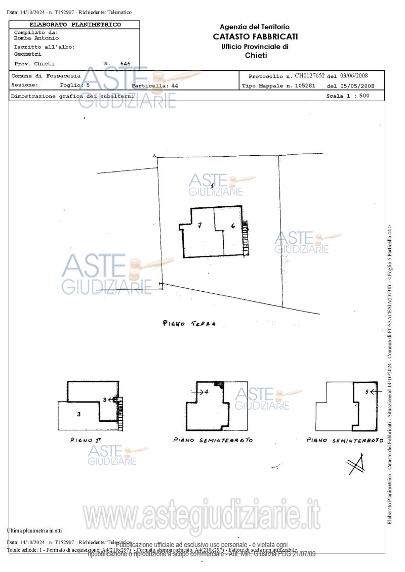Vendita all'asta Senza incanto, con gara telematica asincrona - LOTTO UNICO:  Quote indivise di 2/15 di immobile in Fossacesia costituito da n.3 piccoli appartamenti e 2 garage in C.F. al F. 5, PART. 44, SUB 3, 4, 5, 6 e 7.Quote indivise di 2/15 dell’immobile in Schiavi d’Abruzzo costituito di un edificio allo stato grezzo indentificato in C.F. al F. 51, PART. 64, 62 e 4129. Prezzo base € 26.666,00 (offerta minima € 20.000,00). Data inizio operazioni di vendita: 05/11/2025 ore 10:00. Rif. Tribunale di Lanciano - Liquidazione controllata(cci) n. 26/2024