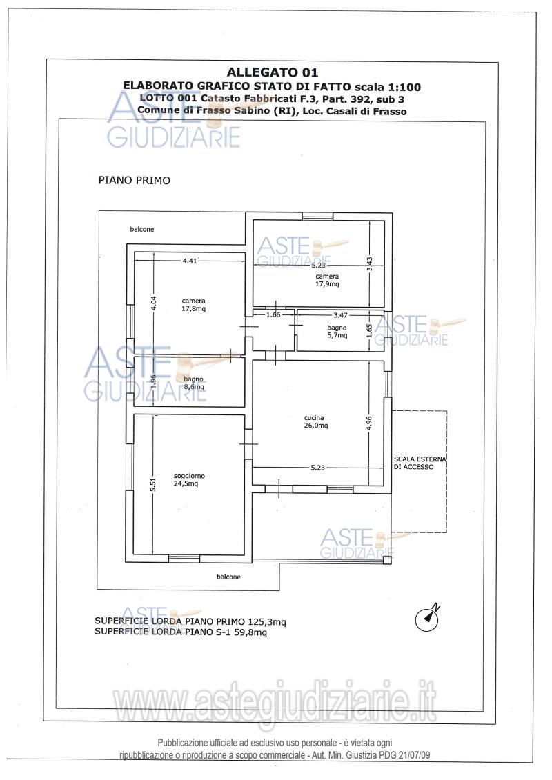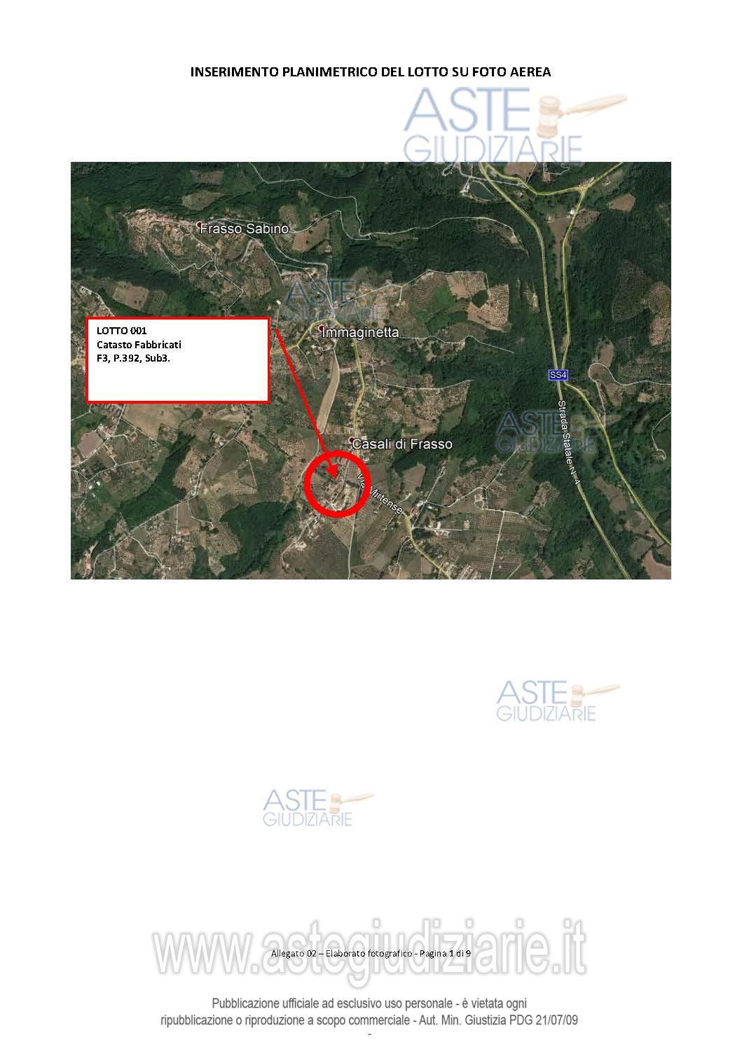 Vendita all'asta Senza incanto, con gara telematica asincrona - LOTTO 0: Piena Proprietà per la quota di 1/1 di Abitazione di tipo economico [A3] sita in Frasso Sabino (RI), Casali di Frasso. L'alloggio è dotato di quattro affacci liberi, sviluppa una superficie lorda di 152mq ed è costituito dai seguenti ambienti: ingresso, soggiorno, cucina, n.4 stanze di cui due abitabili) e n. 2 bagni. Al piano seminterrato è ubicata una cantina (sup. lorda di circa 60mq) che al momento del sopralluogo era utilizzata senza titolo edilizio come residenza. Prezzo base € 108.700,00 (offerta minima € 81.525,00). Data inizio operazioni di vendita: 13/05/2026 ore 10:45. Giudice Marilina Guglielmi. Professionista delegato alla vendita Avv. Chiara Di Nardo - Email "info@avvocatodinardo.it"; Tel. 0746271109. Custode Giudiziario Avv. Chiara Di Nardo - Email "info@avvocatodinardo.it"; Tel. 0746271109. Rif. Tribunale di Rieti - Espropriazione immobiliare (cartabia) n. 111/2024