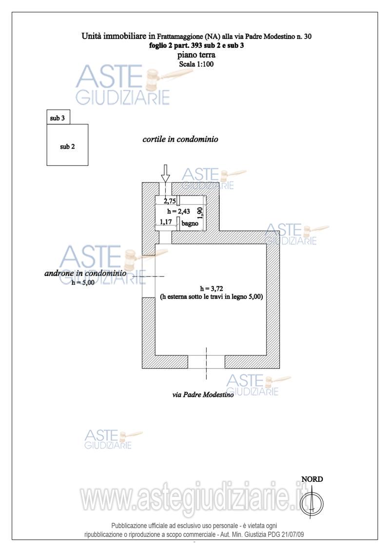 Vendita all'asta Senza incanto, con gara telematica asincrona - LOTTO 5: APPARTAMENTO in FRATTAMAGGIORE (NA), via Padre Modestino n. 30, composto da un vano sito al piano terra, con accesso sia dalla pubblica via, che da un’apertura sul lato ovest posta sotto all’androne comune. Si presenta in sufficienti condizioni di manutenzione, con pavimenti datati e pareti rivestite con carta da parati. L’altezza utile interna fino ad una controsoffittatura telata è di m. 3,72. Prezzo base € 49.500,00 (offerta minima € 37.125,00). Data inizio operazioni di vendita: 25/02/2026 ore 11:00. Giudice Dott. Nicola Mazzocca. Professionista delegato alla vendita Avv. Ilaria Malagrida - Email "studiolegale@malagridaleopoldo.it"; Tel. 0813723459. Rif. Tribunale di Napoli - Contenzioso civile n. 85787/2013